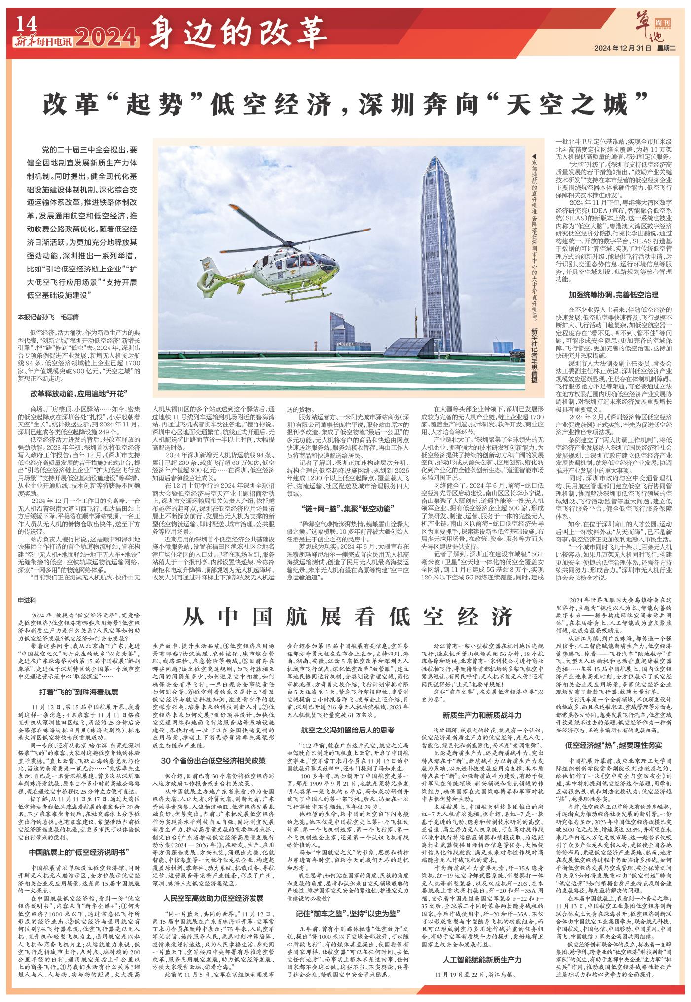 此前的11月5日,空军在京组织新闻发布会介绍参加第15届中国航展有关信息。空军参谋部方奇勇大校在发布会上表示,支持四川、海南、湖南、安徽、江西5省低空改革和深圳无人机城市飞行试点,深化低空改革“放管服”,建立军地民协同运行机制,分类划设管理空域,简化审批流程。方奇勇大校介绍,飞行计划审批时限由5天压减至3天,紧急飞行即报即批,非管制空域提前2小时报备即飞。发布会上还介绍,目前,深圳已开通216条无人机物流航线,2023年无人机载货飞行量突破61万架次。