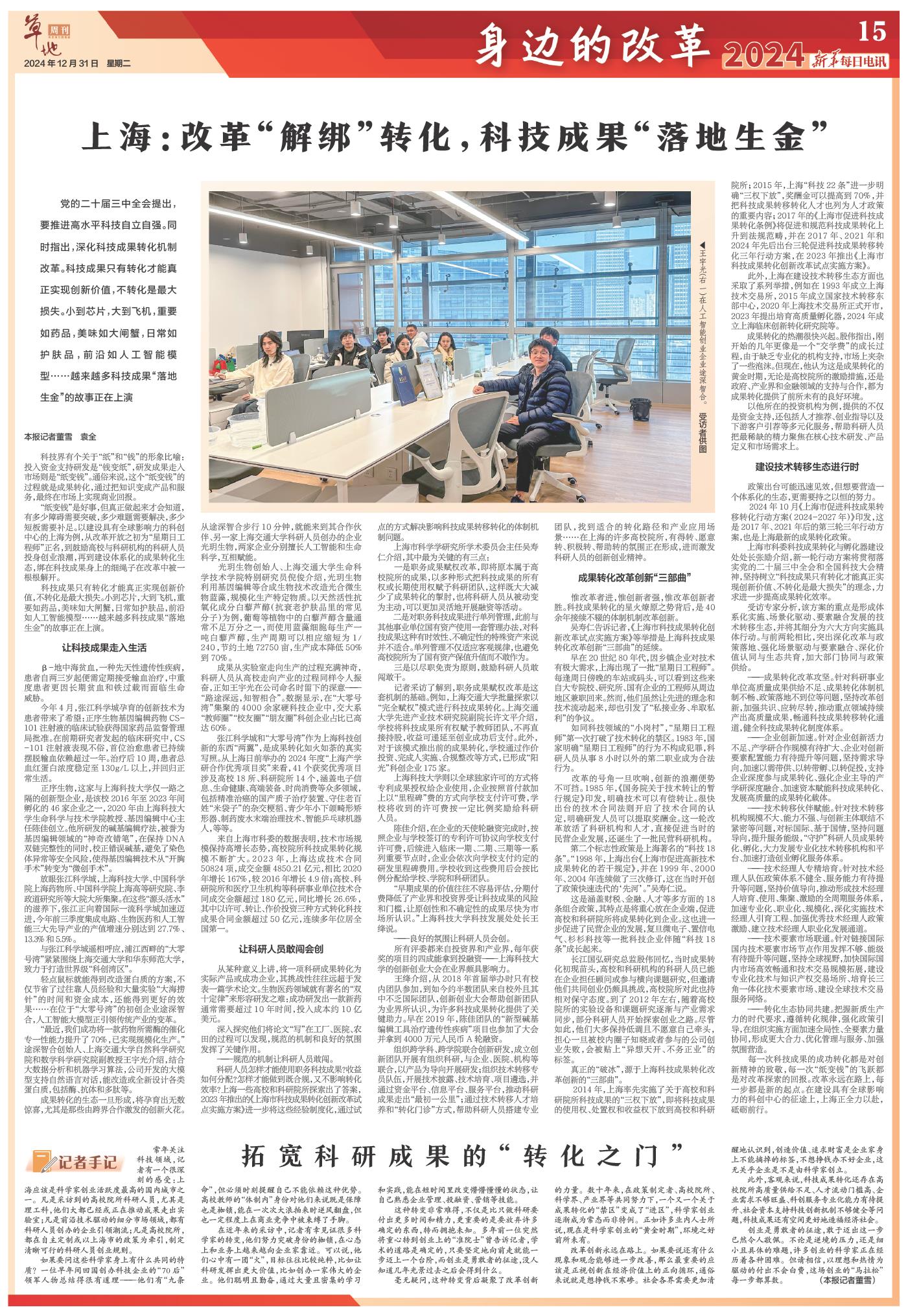 “纸变钱”是好事,但真正做起来才会知道,有多少障碍需要突破,多少难题需要解决,多少短板需要补足。以建设具有全球影响力的科创中心的上海为例,从改革开放之初为“星期日工程师”正名,到鼓励高校与科研机构的科研人员投身创业浪潮,再到建设体系化的成果转化生态,绑在科技成果身上的细绳子在改革中被一根根解开。