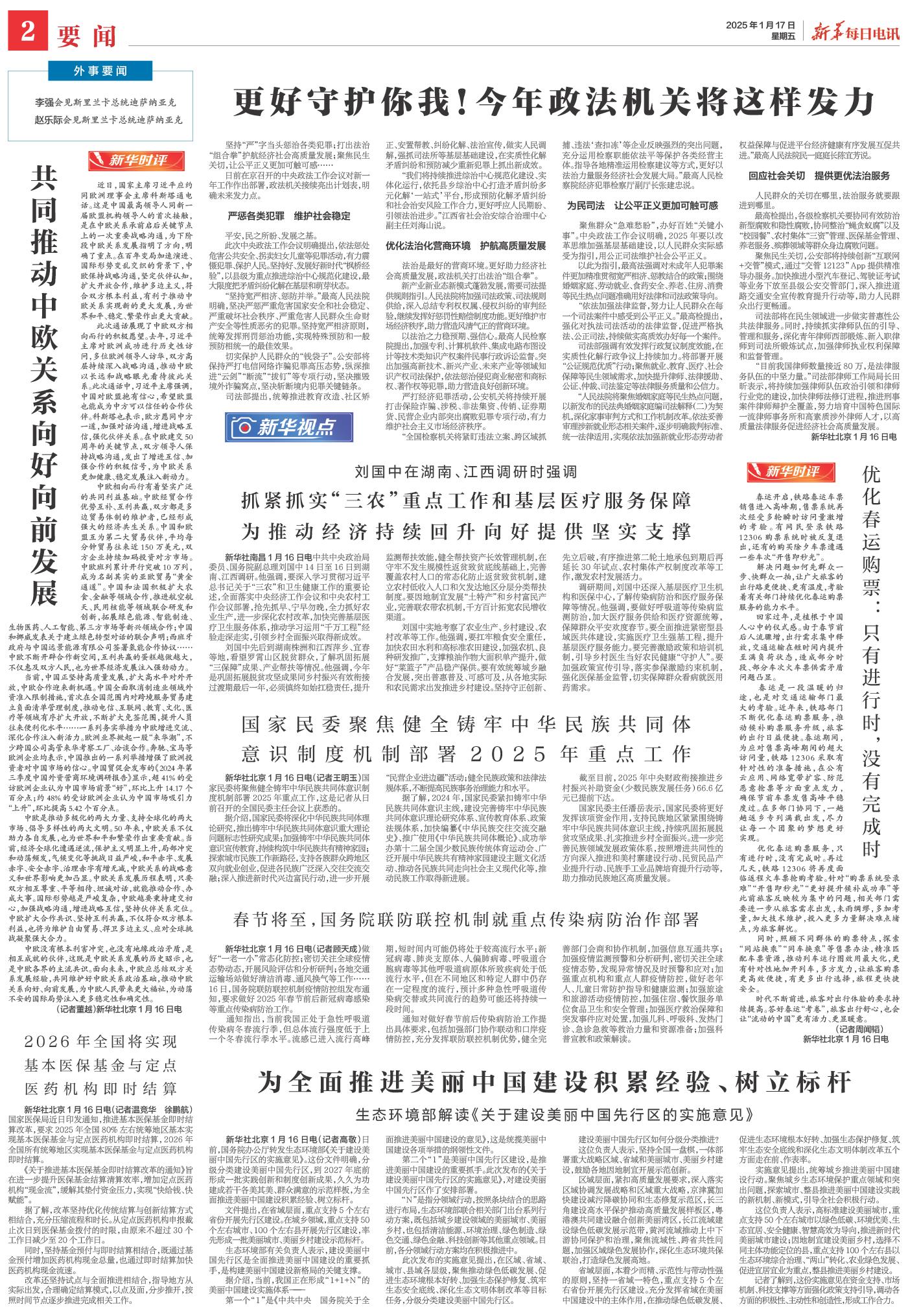 | ( 2025-01-17 ) 稿件来源:新华每日电讯 要闻 |