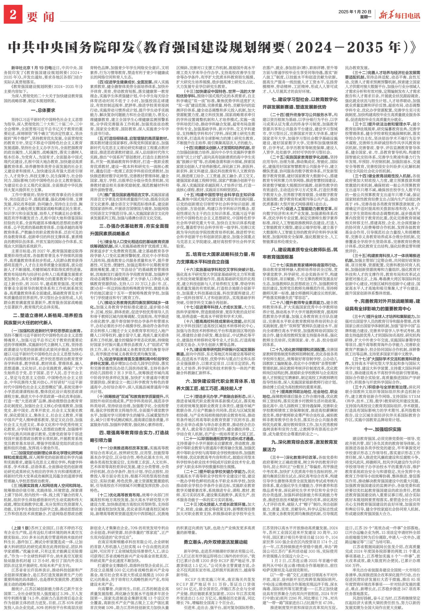 ( 2025-01-20 ) 稿件来源:新华每日电讯 要闻