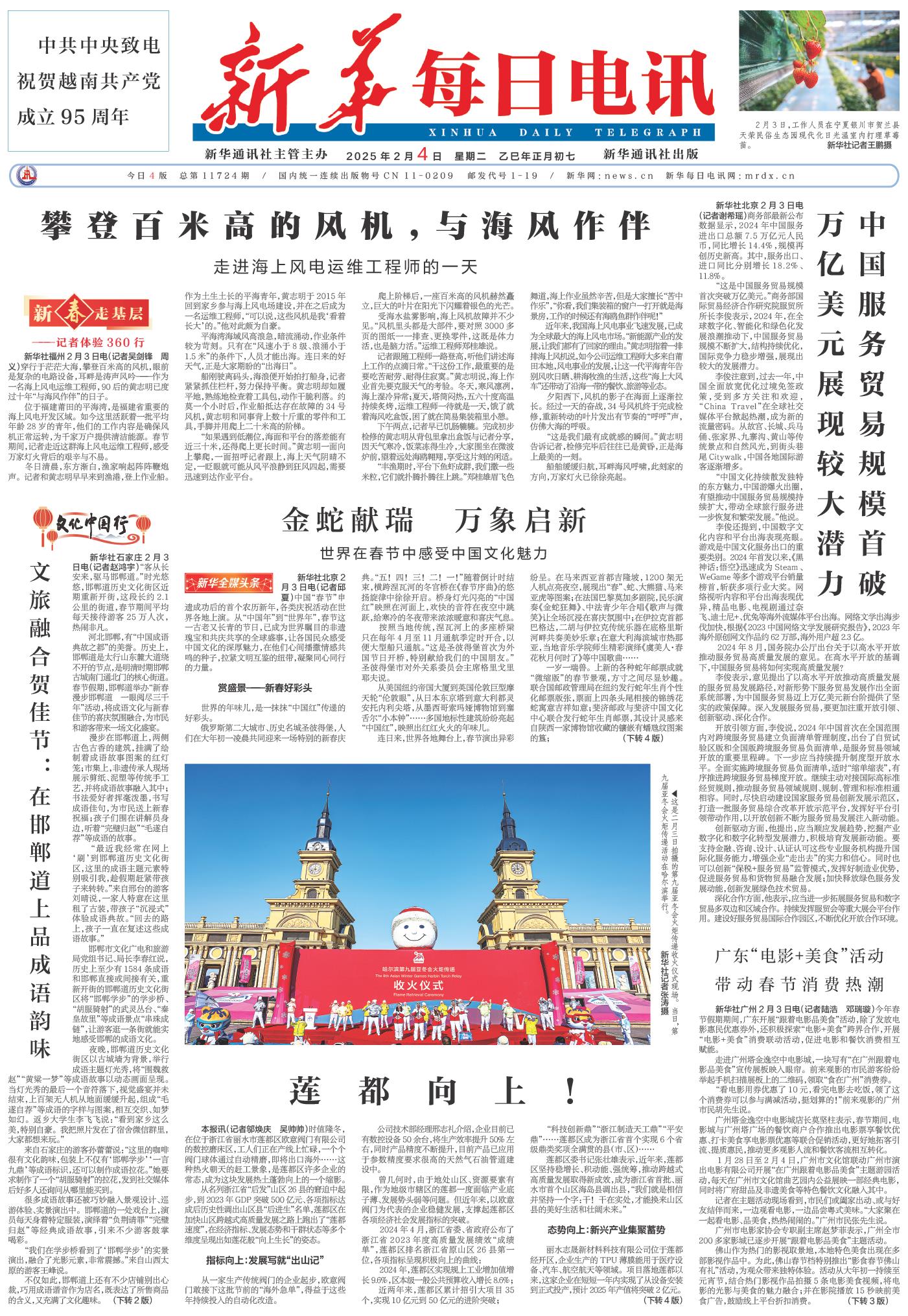 | ( 2025-02-04 ) 稿件来源:新华每日电讯 要闻 |