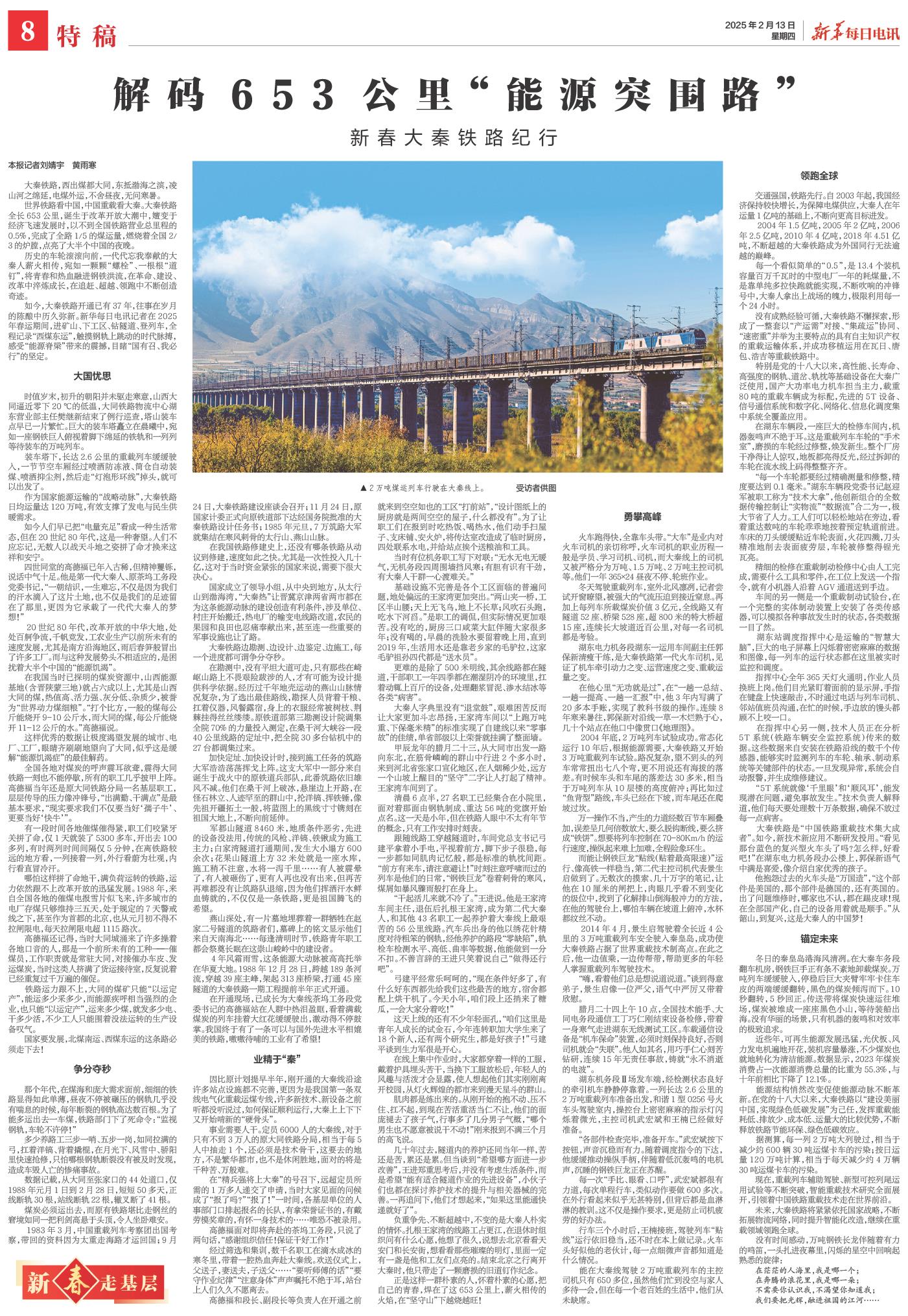如今,大秦铁路开通已有37年,往事在岁月的陈酿中历久弥新。新华每日电讯记者在2025年春运期间,进矿山、下工区、钻隧道、登列车,全程记录“西煤东运”,触摸钢轨上跳动的时代脉搏,感受“能源脊梁”带来的震撼,目睹“国有召、我必行”的坚定。