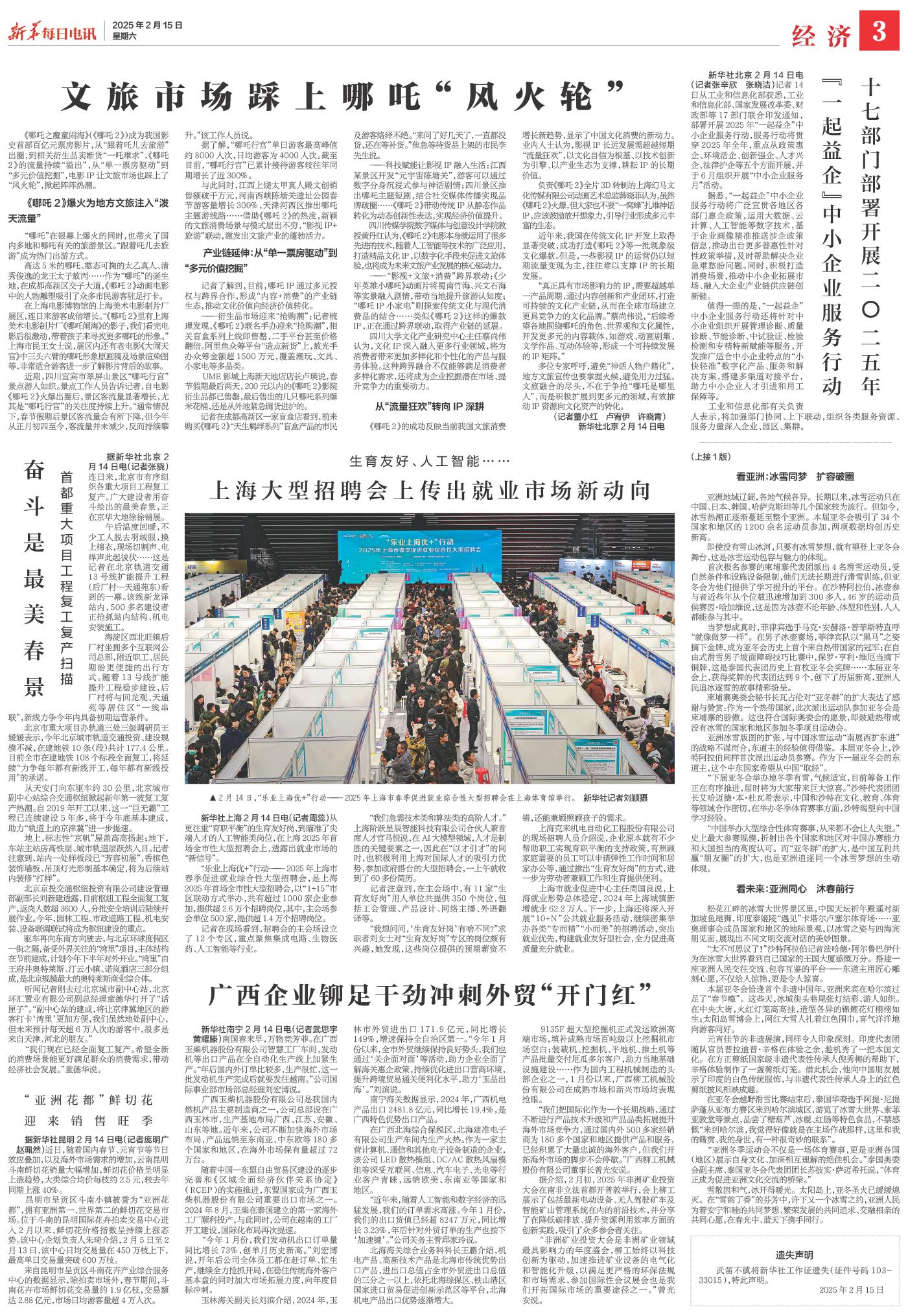 | ( 2025-02-15 ) 稿件来源:新华每日电讯 经济 |