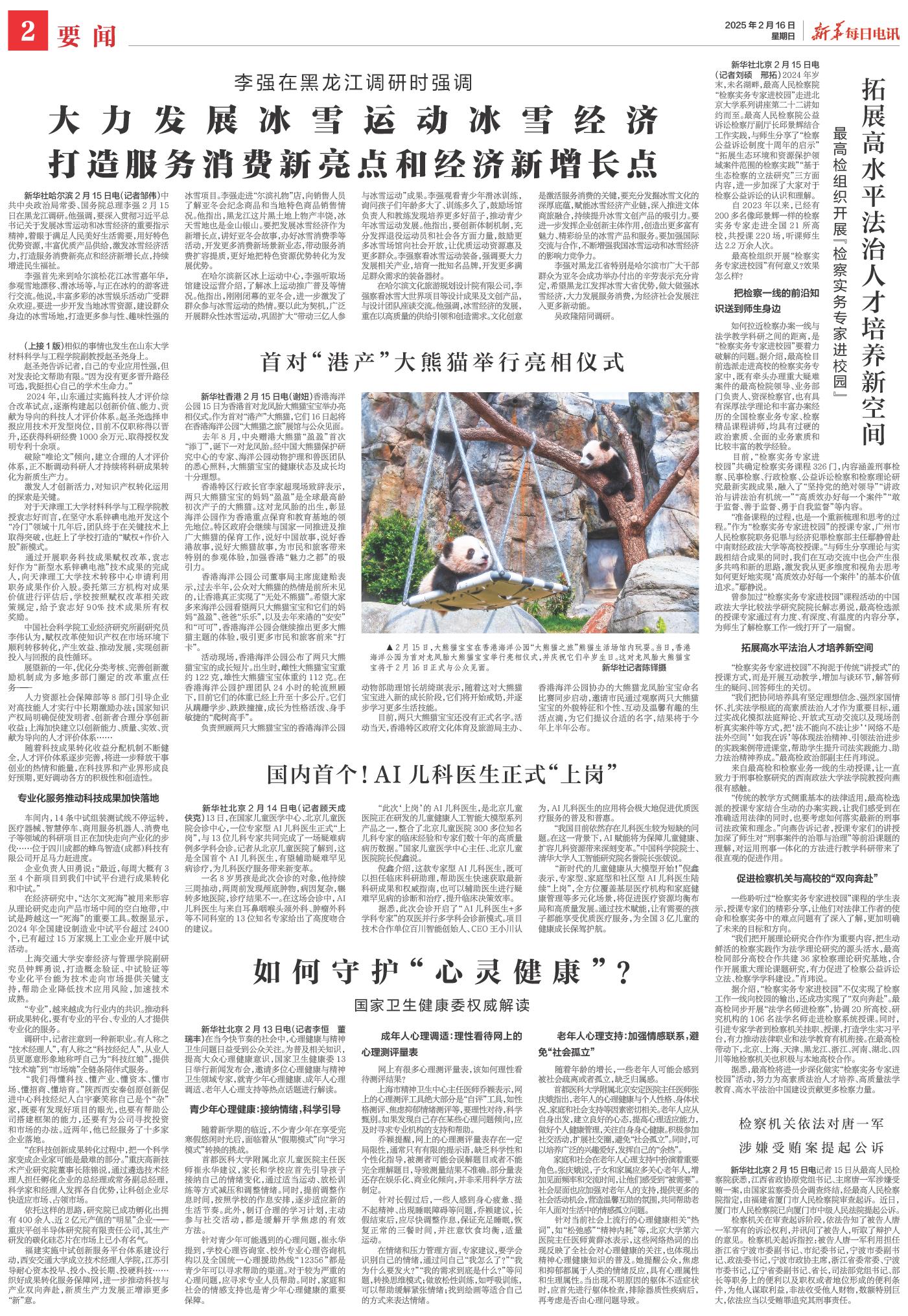 | ( 2025-02-16 ) 稿件来源:新华每日电讯 要闻 |