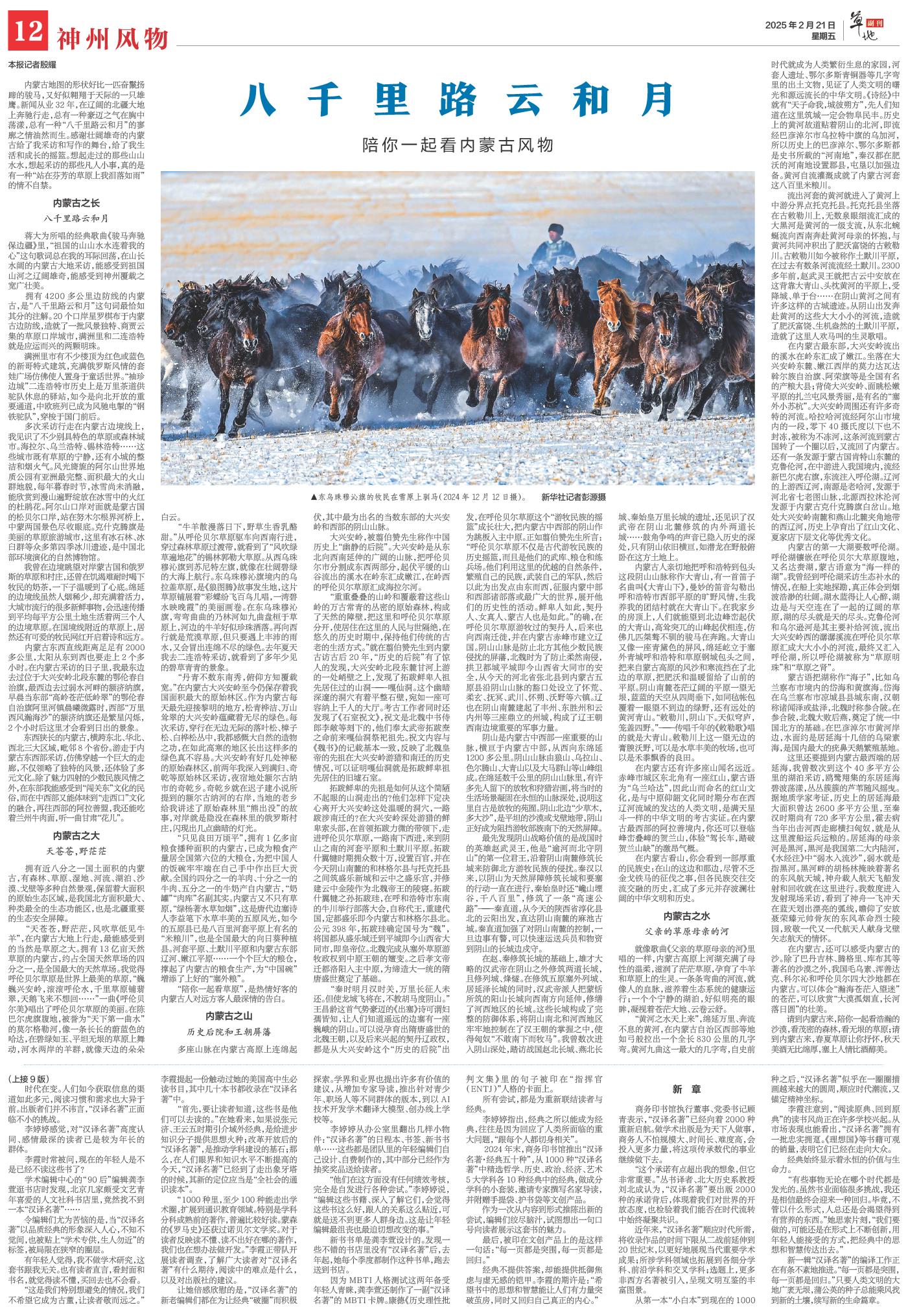 蒋大为所唱的经典歌曲《骏马奔驰保边疆》里,“祖国的山山水水连着我的心”这句歌词总在我的耳际回荡,在山长水阔的内蒙古大地采访,能感受到祖国山河之辽阔雄奇,能感受到神州覆载之宽广壮美。