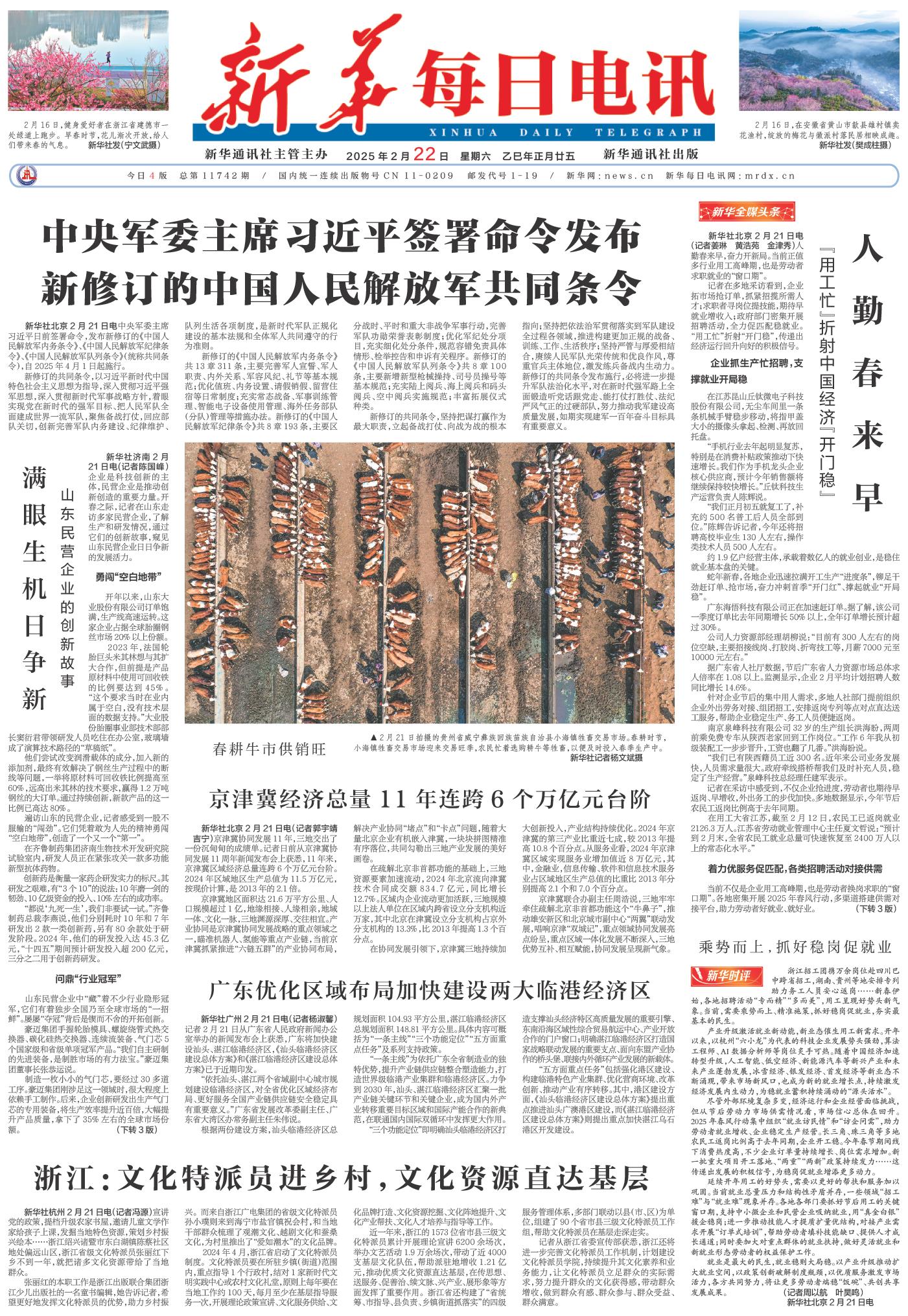 | ( 2025-02-22 ) 稿件来源:新华每日电讯 要闻 |