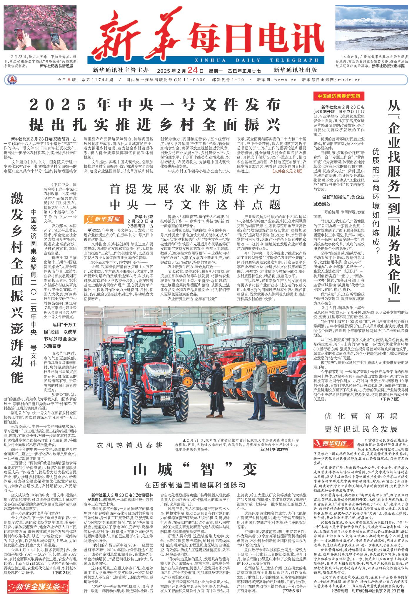 | ( 2025-02-24 ) 稿件来源:新华每日电讯 要闻 |