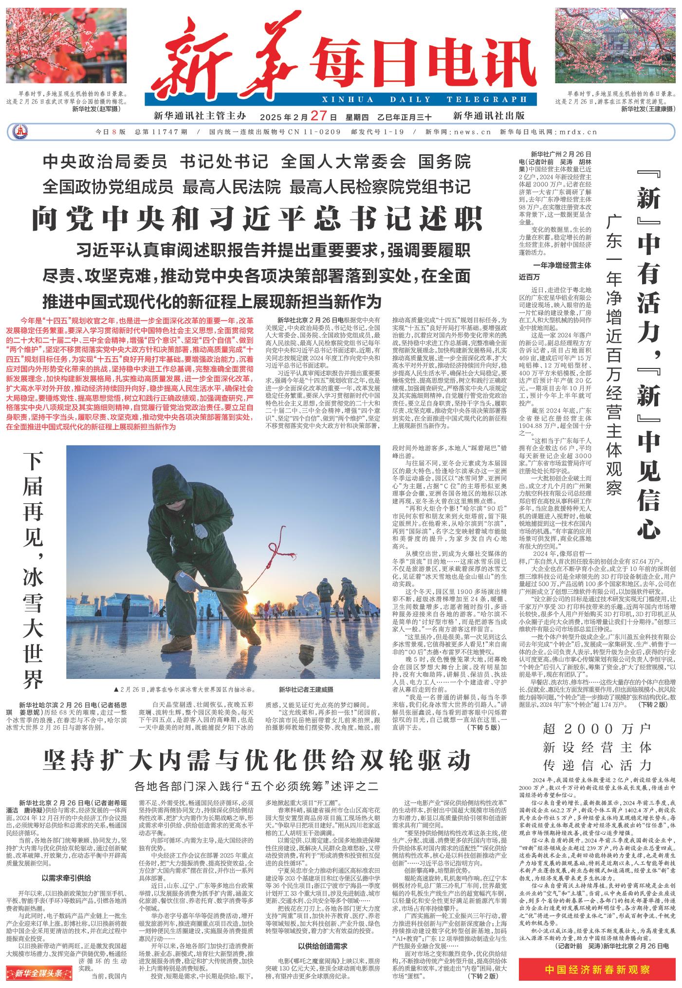 | ( 2025-02-27 ) 稿件来源:新华每日电讯 要闻 |
