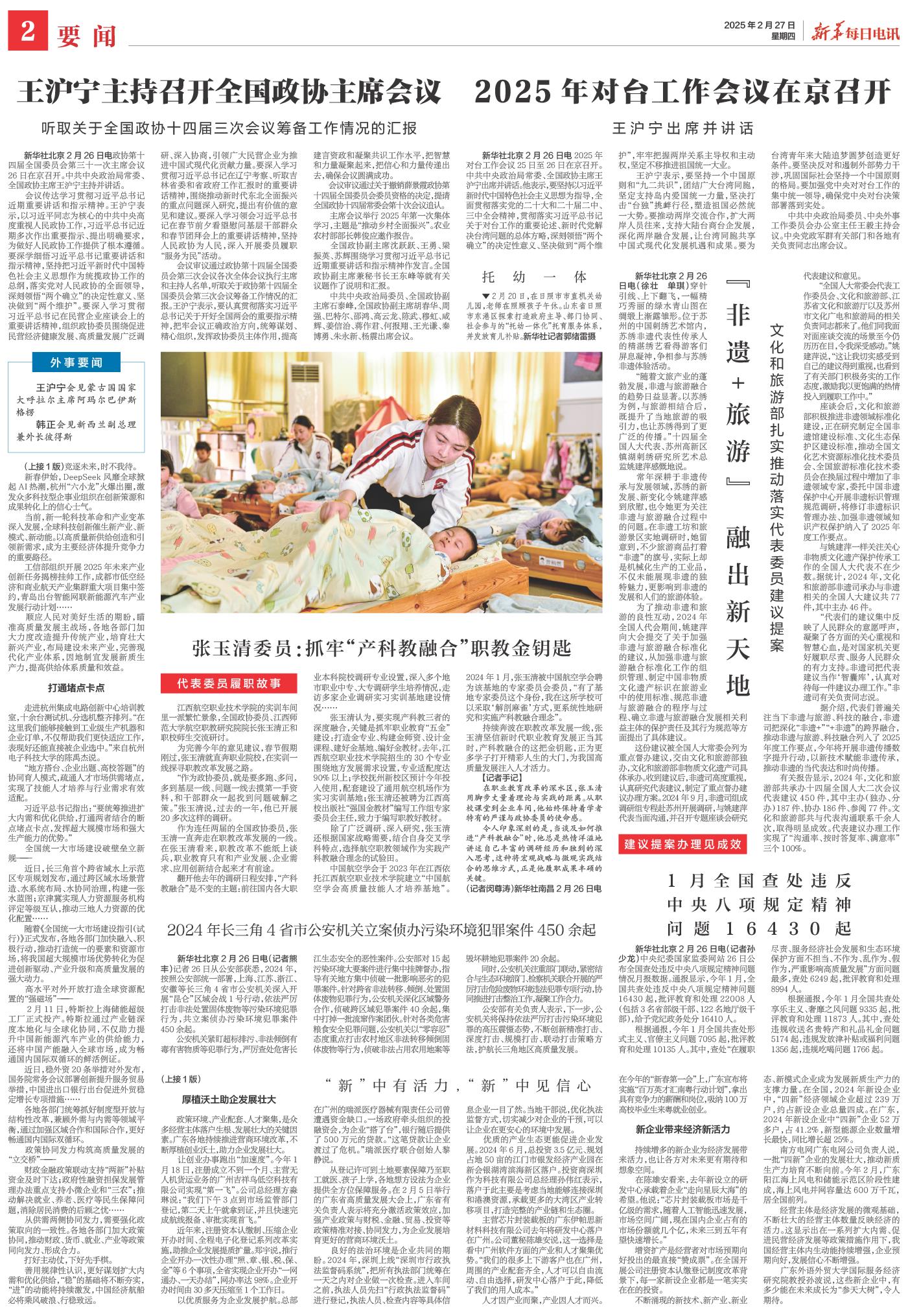 | ( 2025-02-27 ) 稿件来源:新华每日电讯 要闻 |