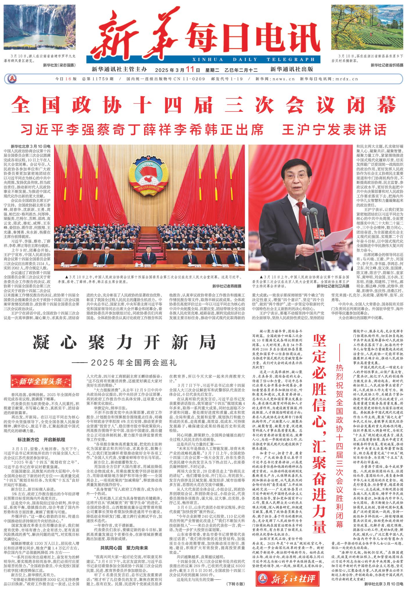 | ( 2025-03-11 ) 稿件来源:新华每日电讯 两会特刊 |