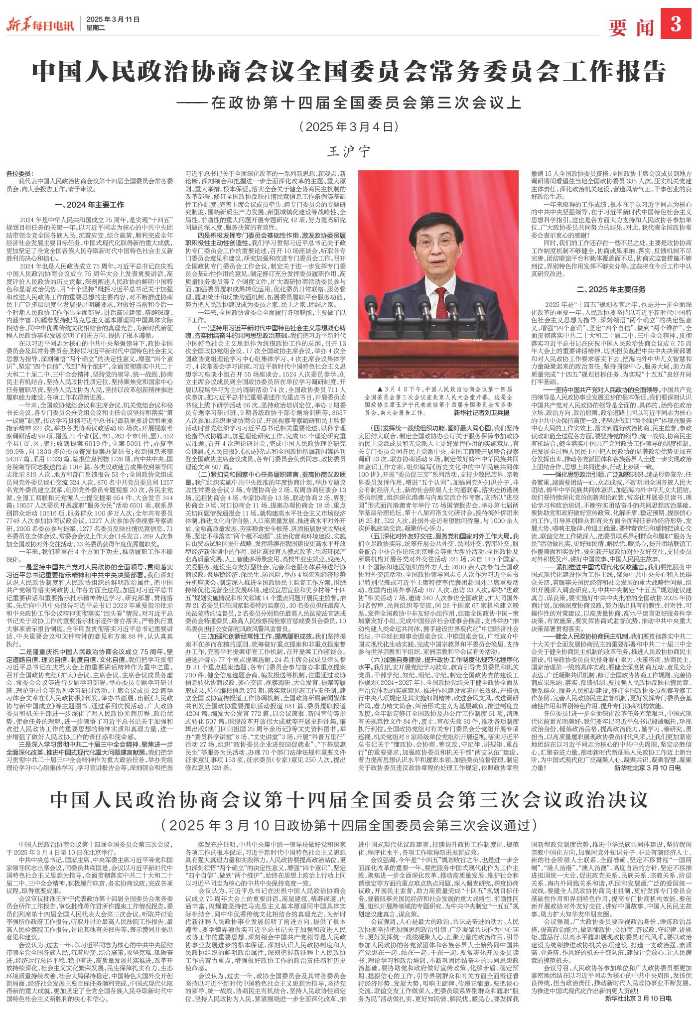 各位委员!进一步全面深化改革任务光荣艰巨,中国式现代化前景光明美好。我们要牢记习近平总书记殷殷嘱托,珍视政治身份,锤炼政治品格,提高政治能力,勤学习、善研究、勇担当,以高质量履职展现政协委员时代风采。让我们更加紧密地团结在以习近平同志为核心的中共中央周围,坚定必胜信心,汇聚奋进力量,推动新时代新征程人民政协工作迈上新台阶,为中国式现代化广泛凝聚人心、凝聚共识、凝聚智慧、凝聚力量! 新华社北京3月10日电