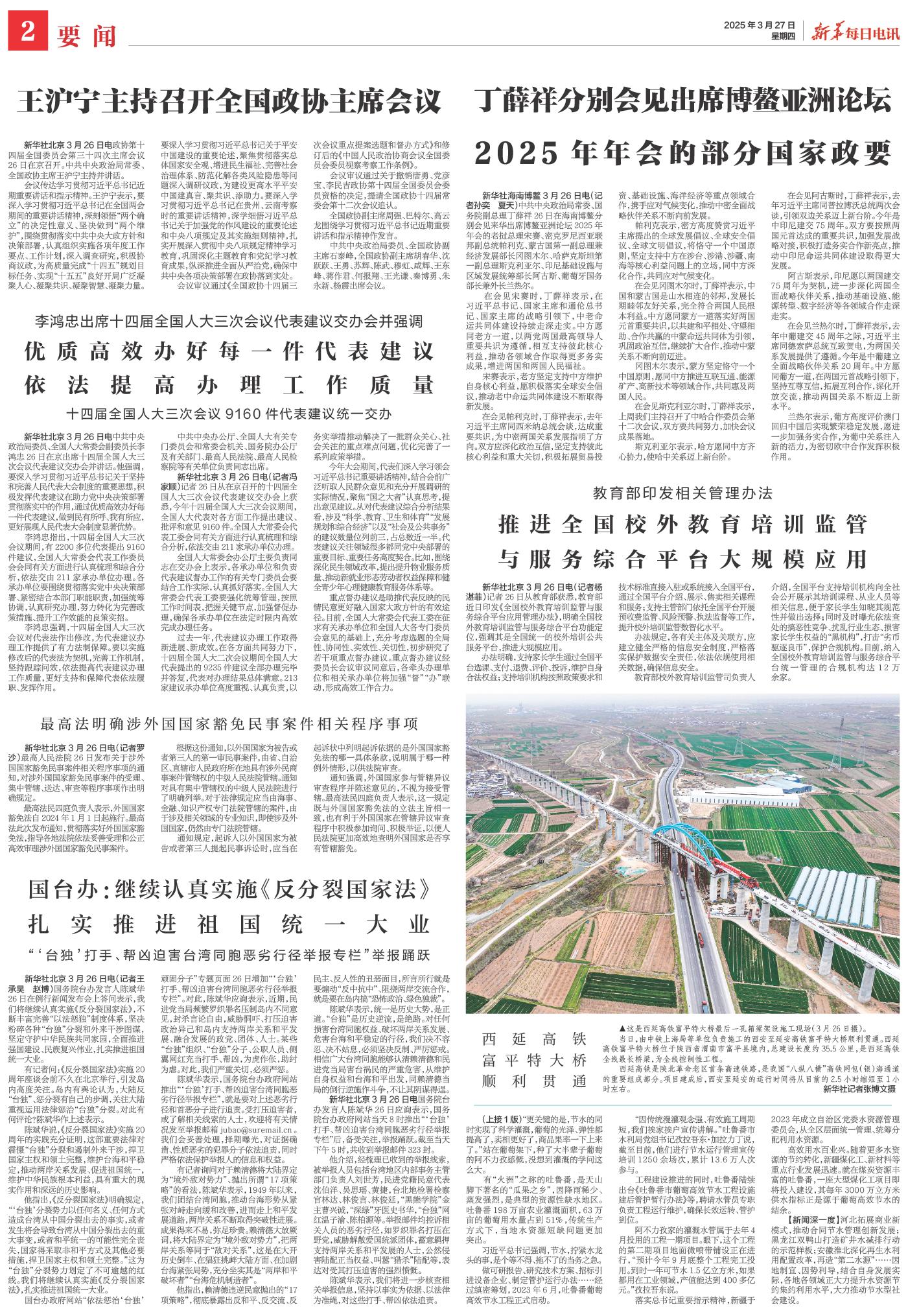 | ( 2025-03-27 ) 稿件来源:新华每日电讯 要闻 |