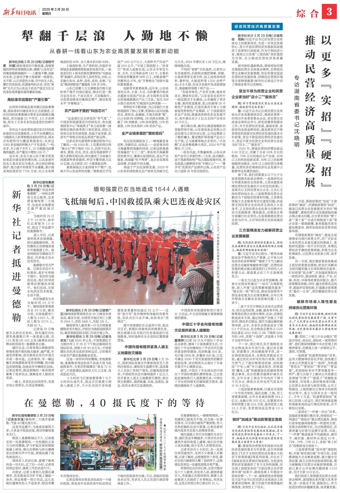 新华社长沙3月29日电(记者陈俊 周楠)习近平总书记在民营企业座谈会上的重要讲话,为进一步坚定发展信心、努力开创民营经济发展新局面提供了思想和行动指南。作为中部经济大省,湖南正以实现“三高四新”美好蓝图为引领,全力推动民营经济高质量发展。