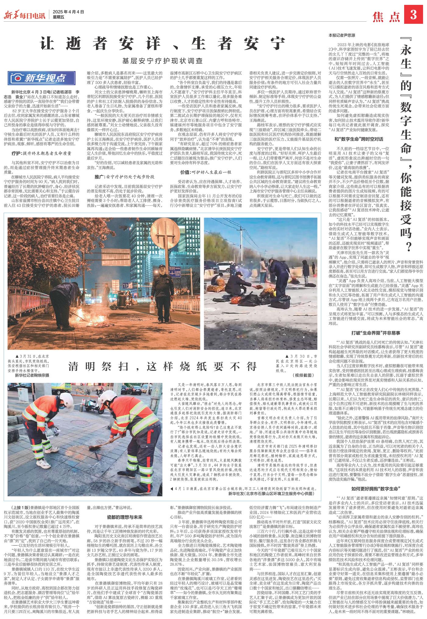 如何避免虚拟慰藉造成现实伤害,如何防止技术滥用导致作恶?新华每日电讯记者就此展开调查,探究“AI复活”产业如何健康发展。
