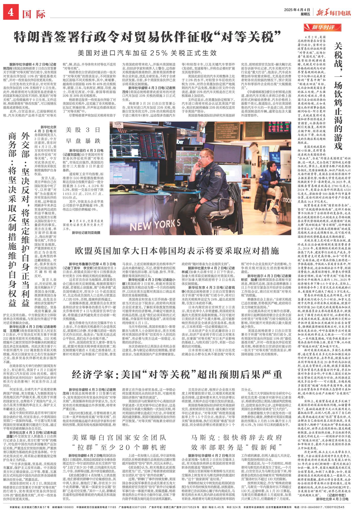 | ( 2025-04-04 ) 稿件来源:新华每日电讯 国际 |