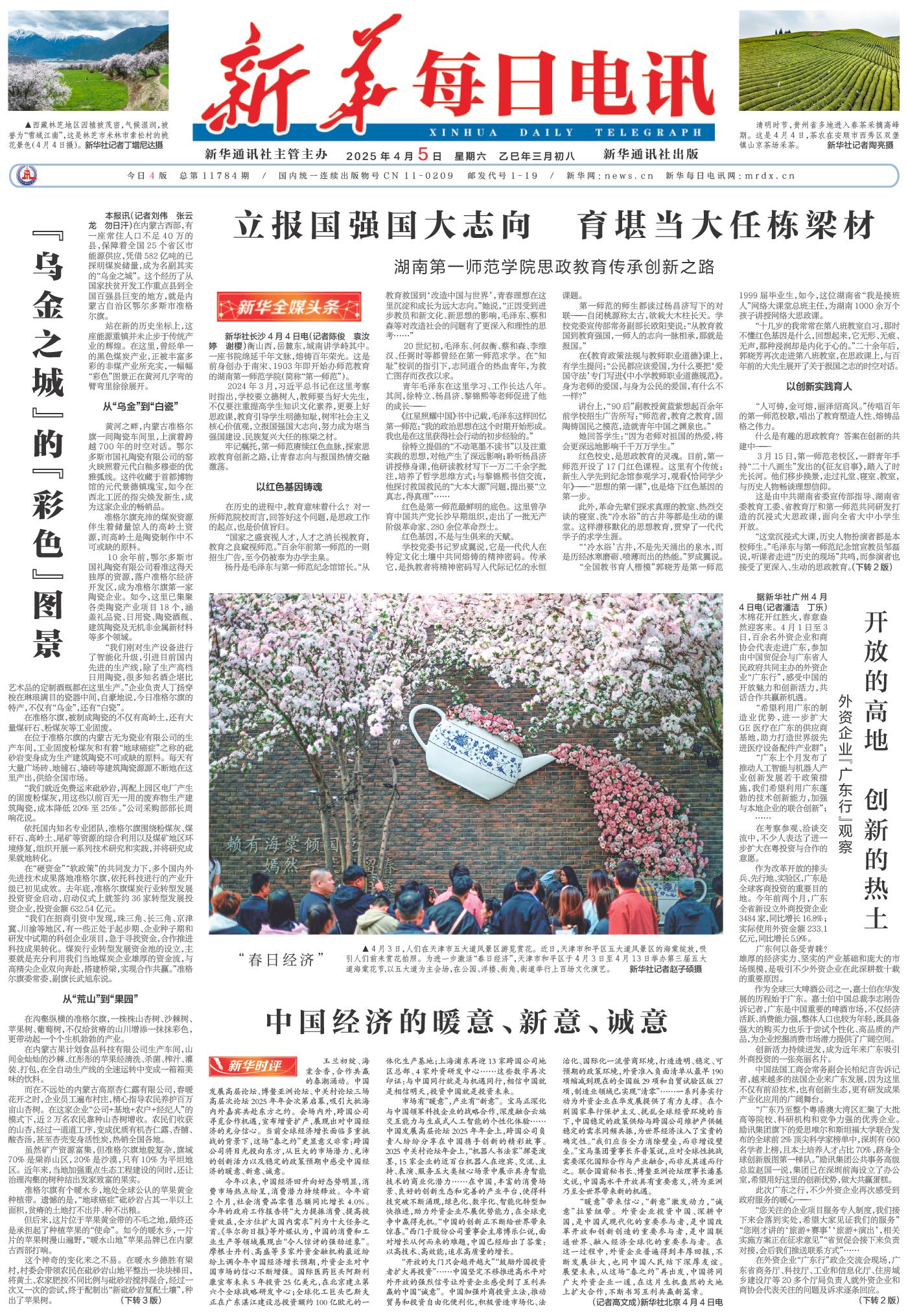 | ( 2025-04-05 ) 稿件来源:新华每日电讯 要闻 |