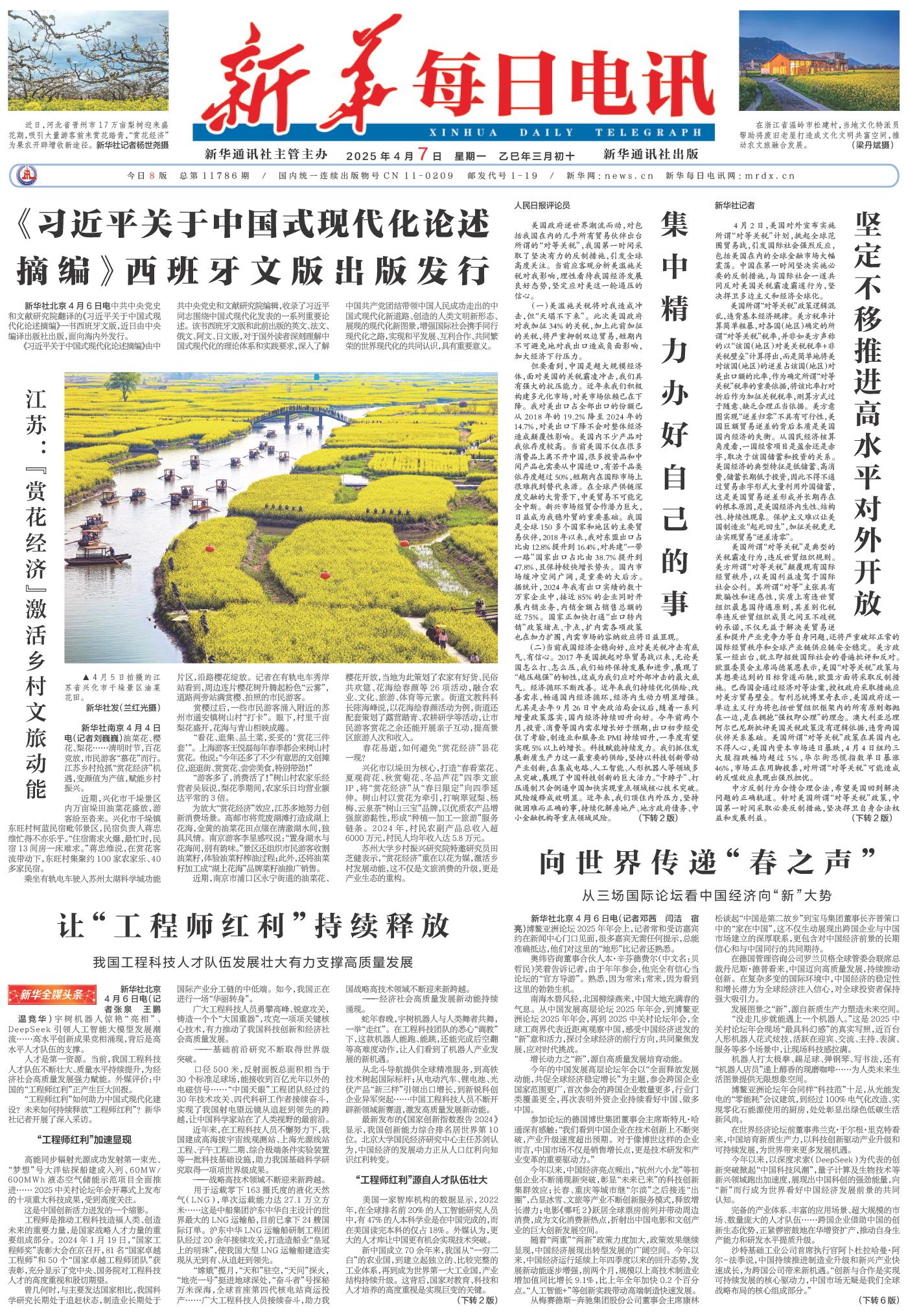 中国移动牵头的5G国际标准达数百项;《黑神话:悟空》跻身有史以来最畅销的30款游戏之列;中国企业推出的高性能、高开放度的AI模型给世界带来惊喜……“工程师红利”不仅成为推动我国经济高质量发展的重要力量,也为世界创造发展新机遇、注入发展新动力。