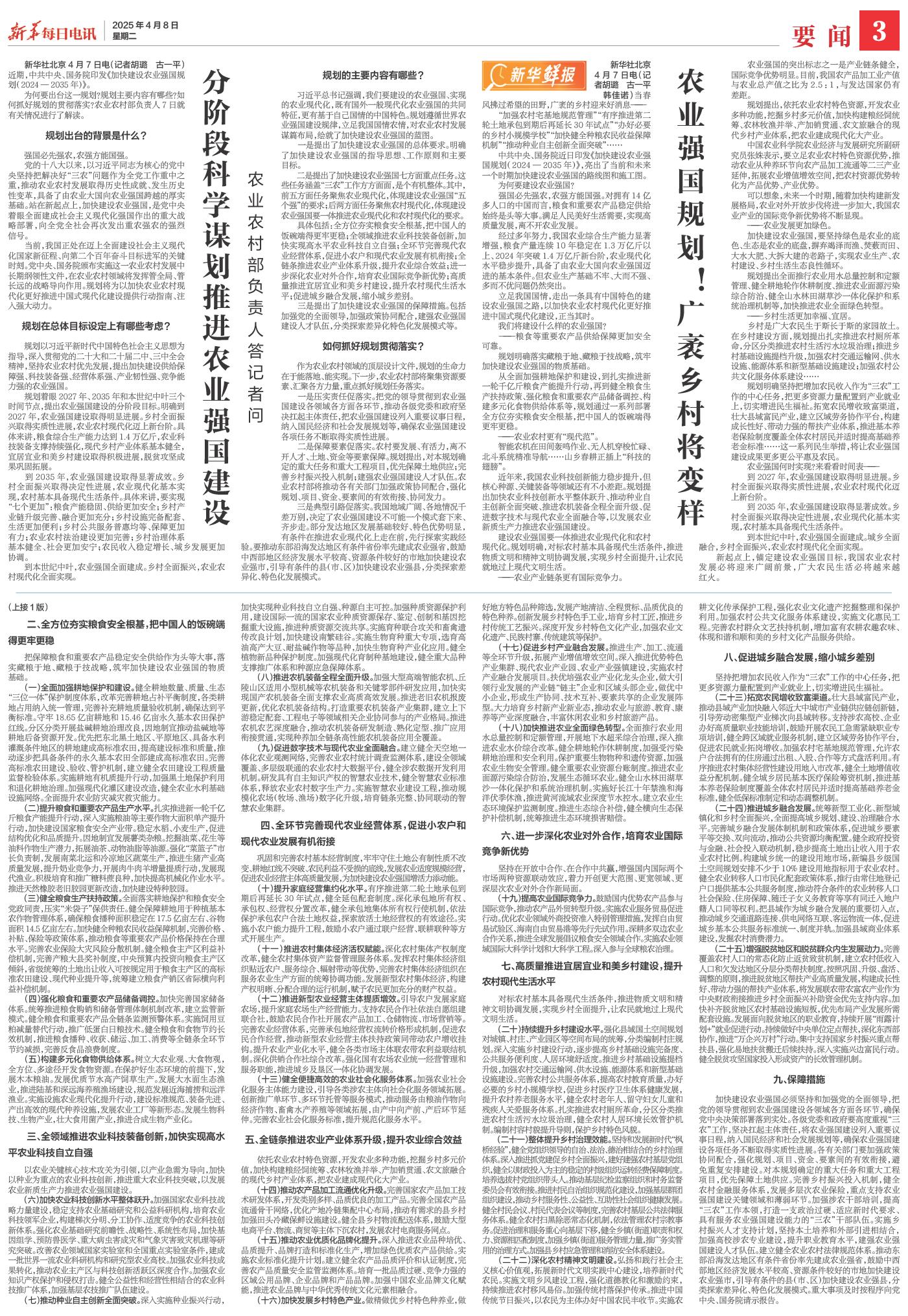 新华社北京4月7日电(记者胡璐 古一平)近期,中共中央、国务院印发《加快建设农业强国规划(2024—2035年)》。