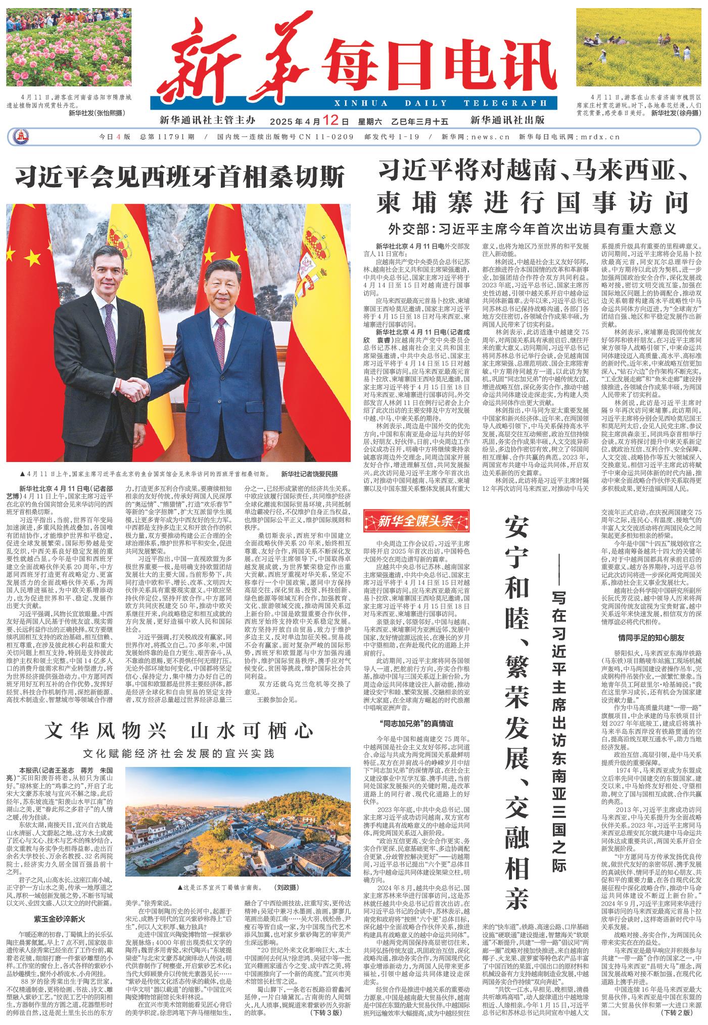 此访期间,习近平主席将同各国领导人一道,把舵前行方向,夯实合作根基,推动中国与三国关系迈上新台阶,为周边命运共同体建设注入新动能,推动建设安宁和睦、繁荣发展、交融相亲的亚洲大家庭,在全球南方崛起的时代浪潮中唱响亚洲声音。