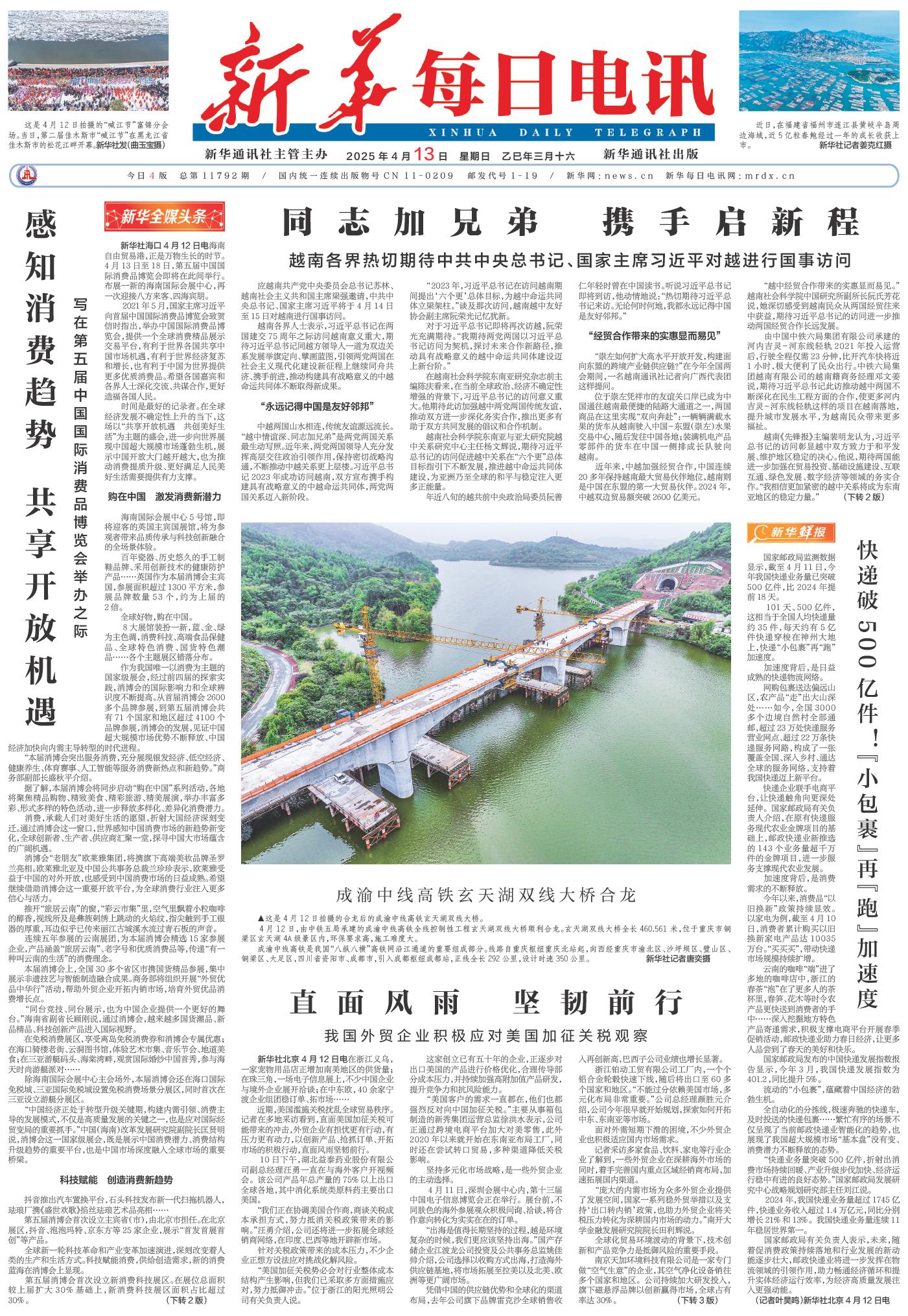 | ( 2025-04-13 ) 稿件来源:新华每日电讯 要闻 |