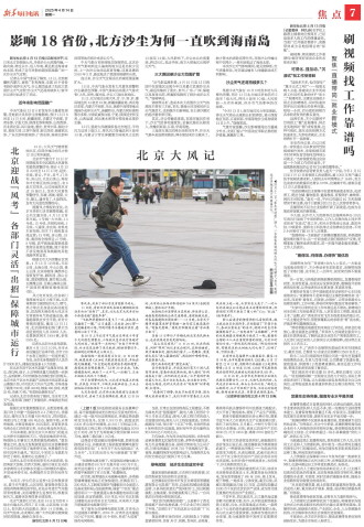 其次,沙尘传输高度高。在高空强风作用下,沙尘气团移动速度快,沿偏北路径长驱直入,传输到西南、江南、华南等地。