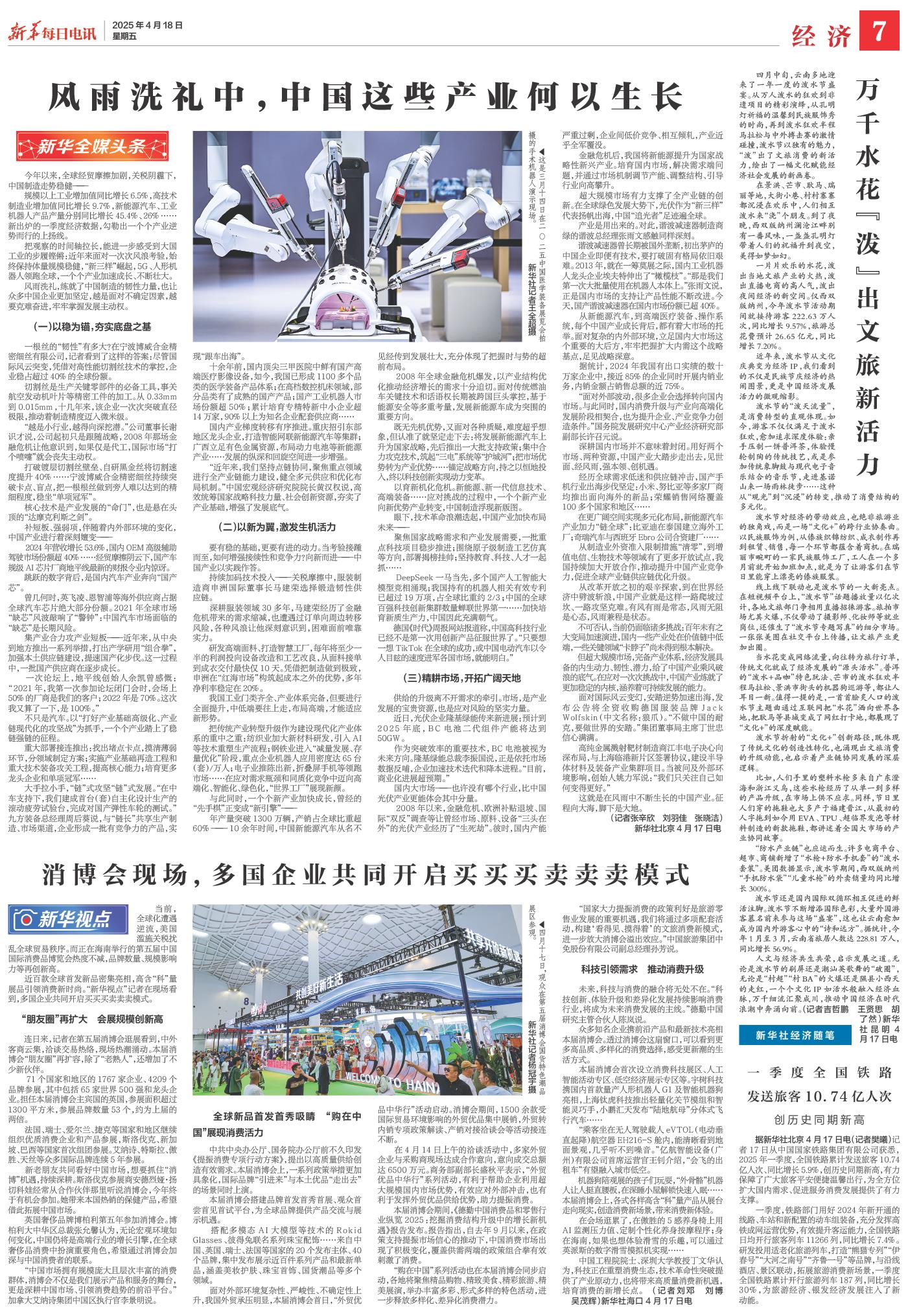 规模以上工业增加值同比增长6.5%,高技术制造业增加值同比增长9.7%,新能源汽车、工业机器人产品产量分别同比增长45.4%、26%……新出炉的一季度经济数据,勾勒出一个个产业逆势而行的上扬线。