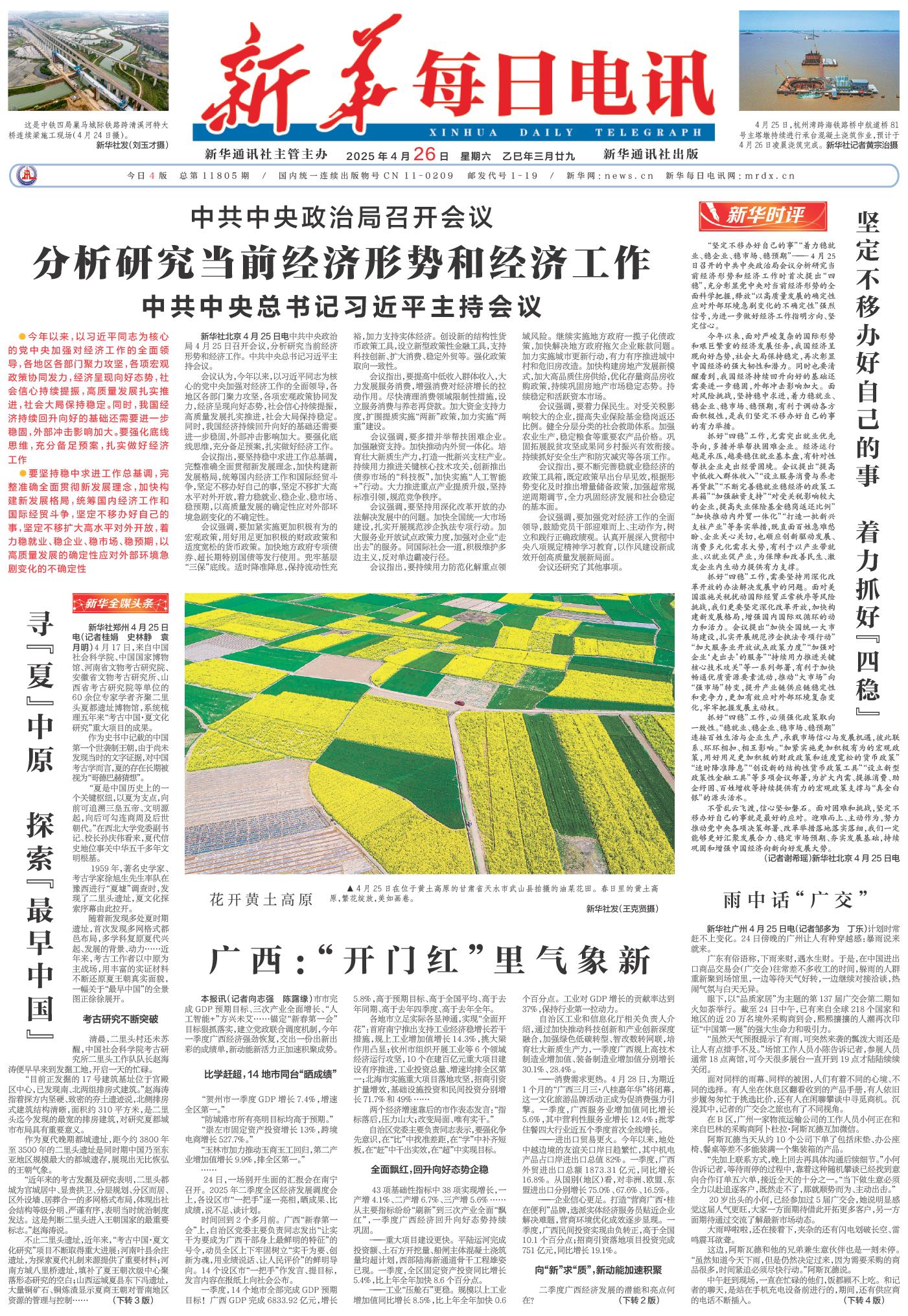 | ( 2025-04-26 ) 稿件来源:新华每日电讯 要闻 |