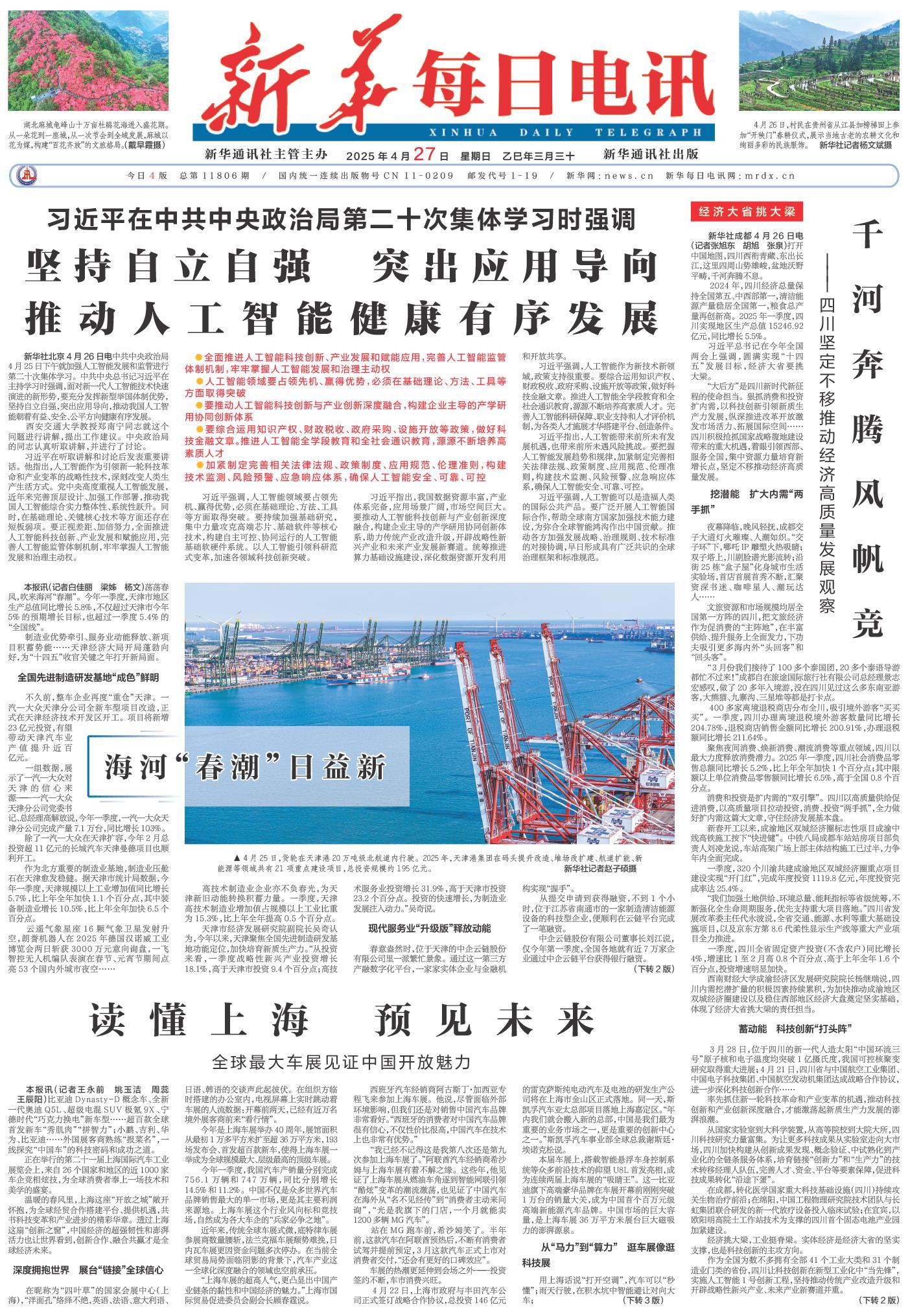 ( 2025-04-27 ) 稿件来源:新华每日电讯 要闻
