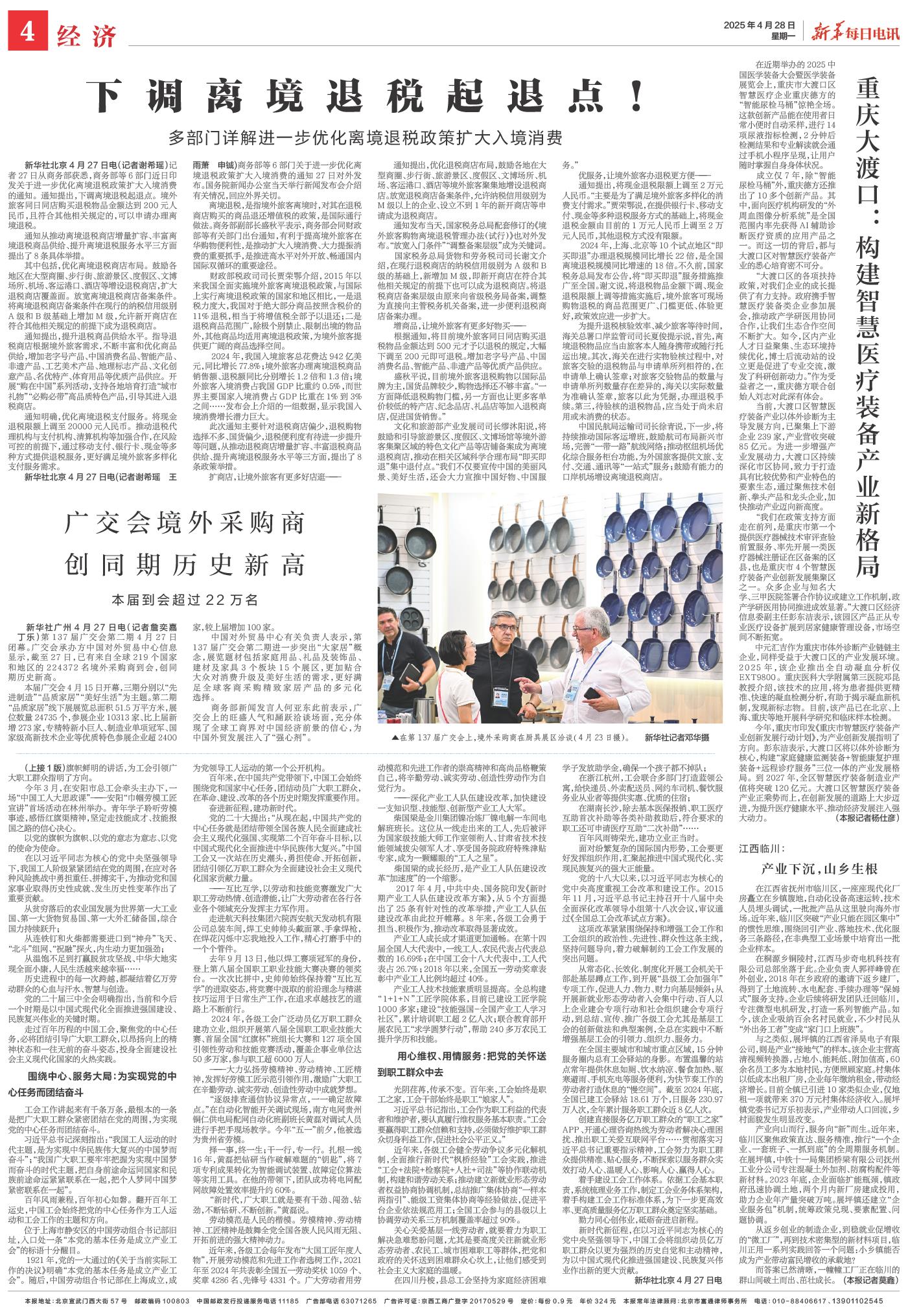 | ( 2025-04-28 ) 稿件来源:新华每日电讯 经济 |