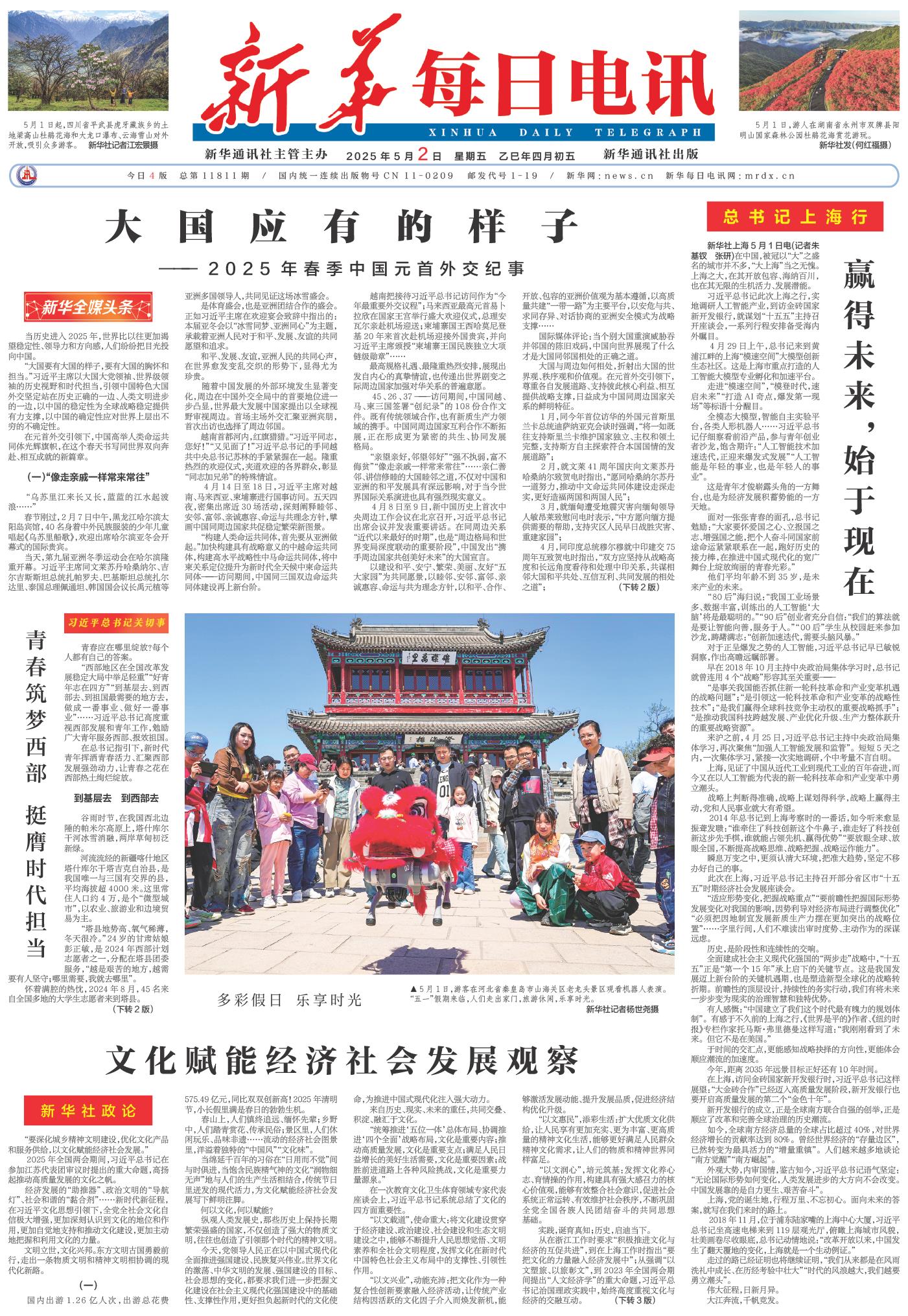 奋进新时代,习近平总书记豪迈宣示——当代中国共产党人和中国人民应该而且一定能够担负起新的文化使命,在实践创造中进行文化创造,在历史进步中实现文化进步! 新华社北京5月1日电