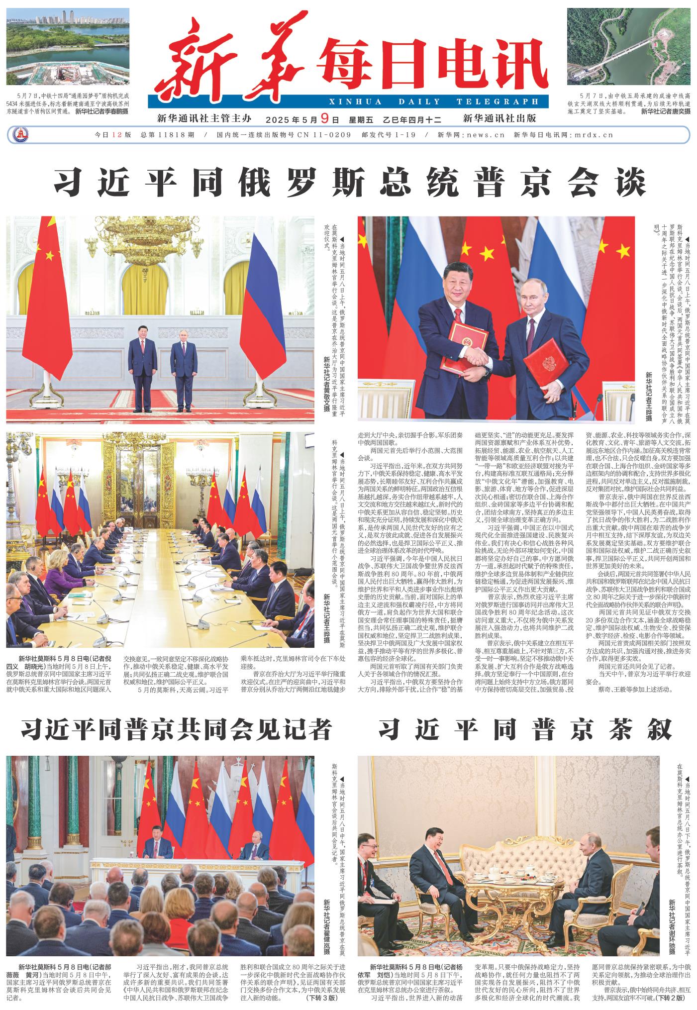 新华社莫斯科5月8日电(记者倪四义 胡晓光)当地时间5月8日上午,俄罗斯总统普京同中国国家主席习近平在莫斯科克里姆林宫举行会谈。两国元首就中俄关系和重大国际和地区问题深入交换意见,一致同意坚定不移深化战略协作,推动中俄关系稳定、健康、高水平发展;共同弘扬正确二战史观,维护联合国权威和地位,维护国际公平正义。