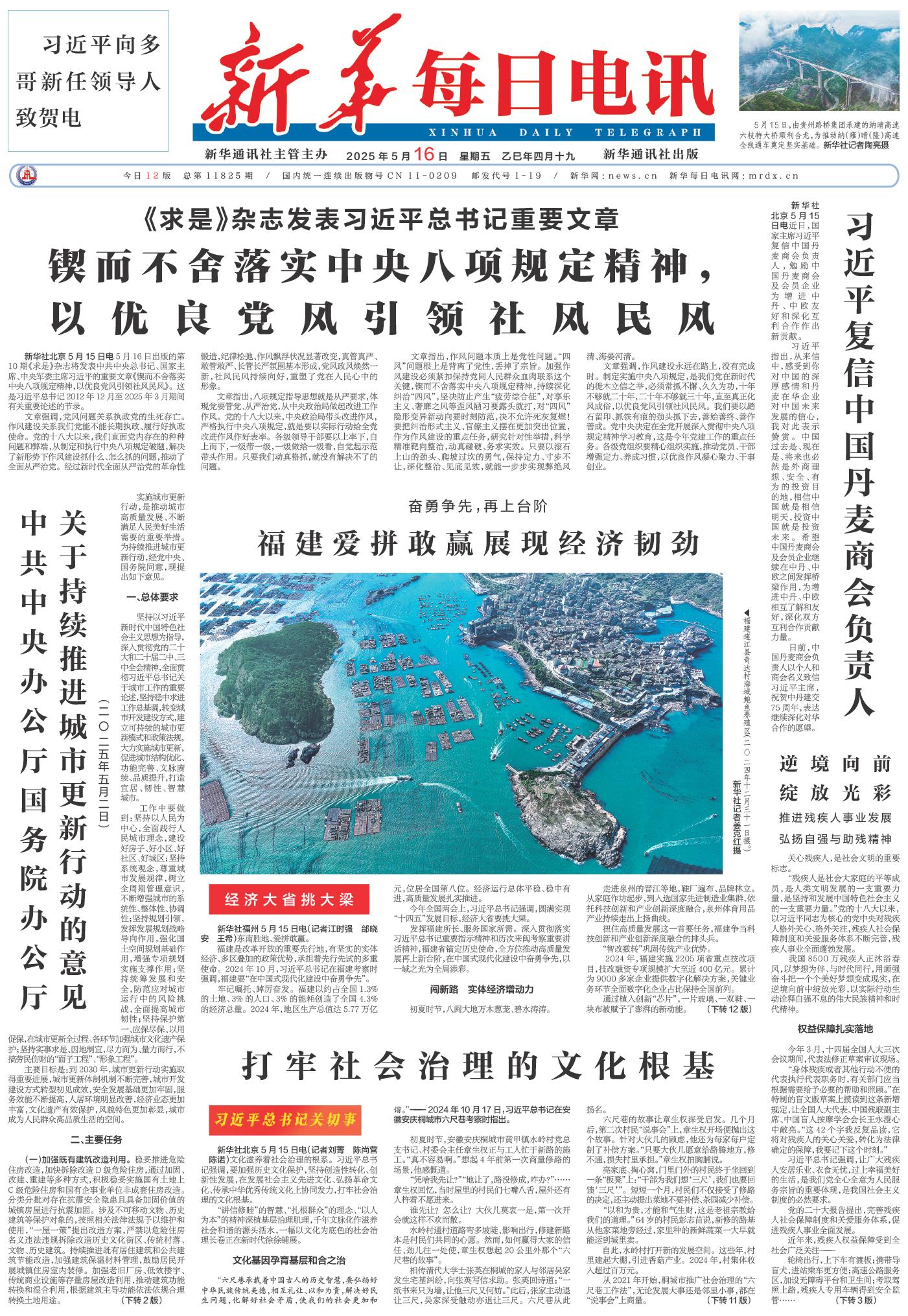 | ( 2025-05-16 ) 稿件来源:新华每日电讯 要闻 |