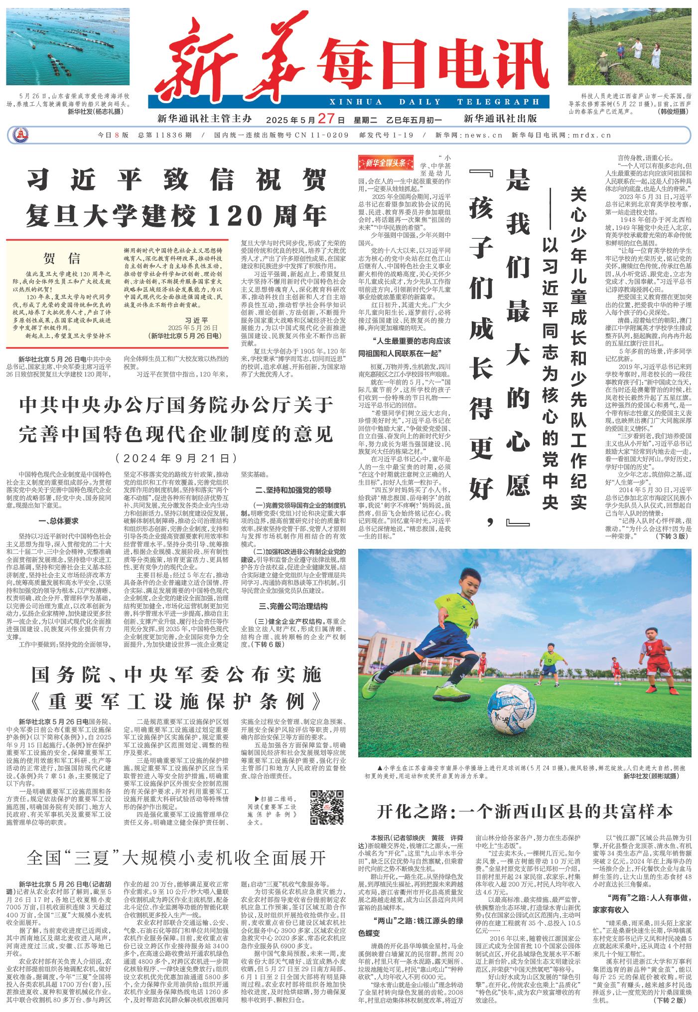 | ( 2025-05-27 ) 稿件来源:新华每日电讯 要闻 |
