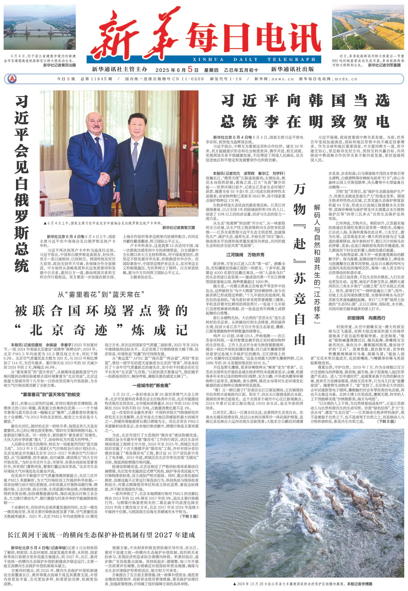| ( 2025-06-05 ) 稿件来源:新华每日电讯 要闻 |
