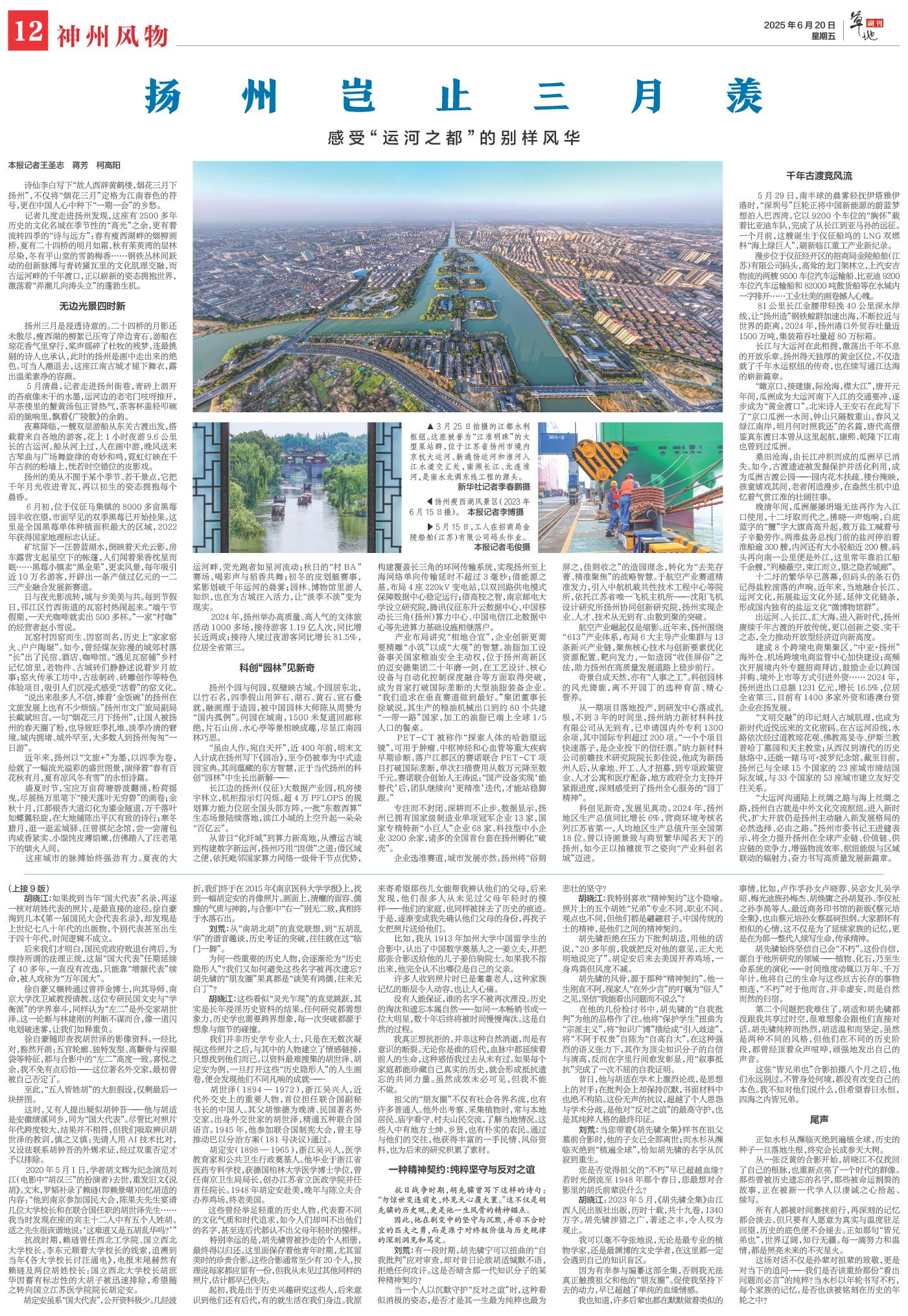 记者几度走进扬州发现,这座有2500多年历史的文化名城在季节性的“高光”之余,更有着流转四季的“诗与远方”:春有瘦西湖畔的烟柳画桥,夏有二十四桥的明月如霜,秋有茱萸湾的层林尽染,冬有平山堂的雪韵梅香……钢铁丛林间跃动的创新脉搏与青砖黛瓦里的文化肌理交融,而古运河畔的千年渡口,正以崭新的姿态拥抱世界,激荡着“弄潮儿向涛头立”的蓬勃生机。