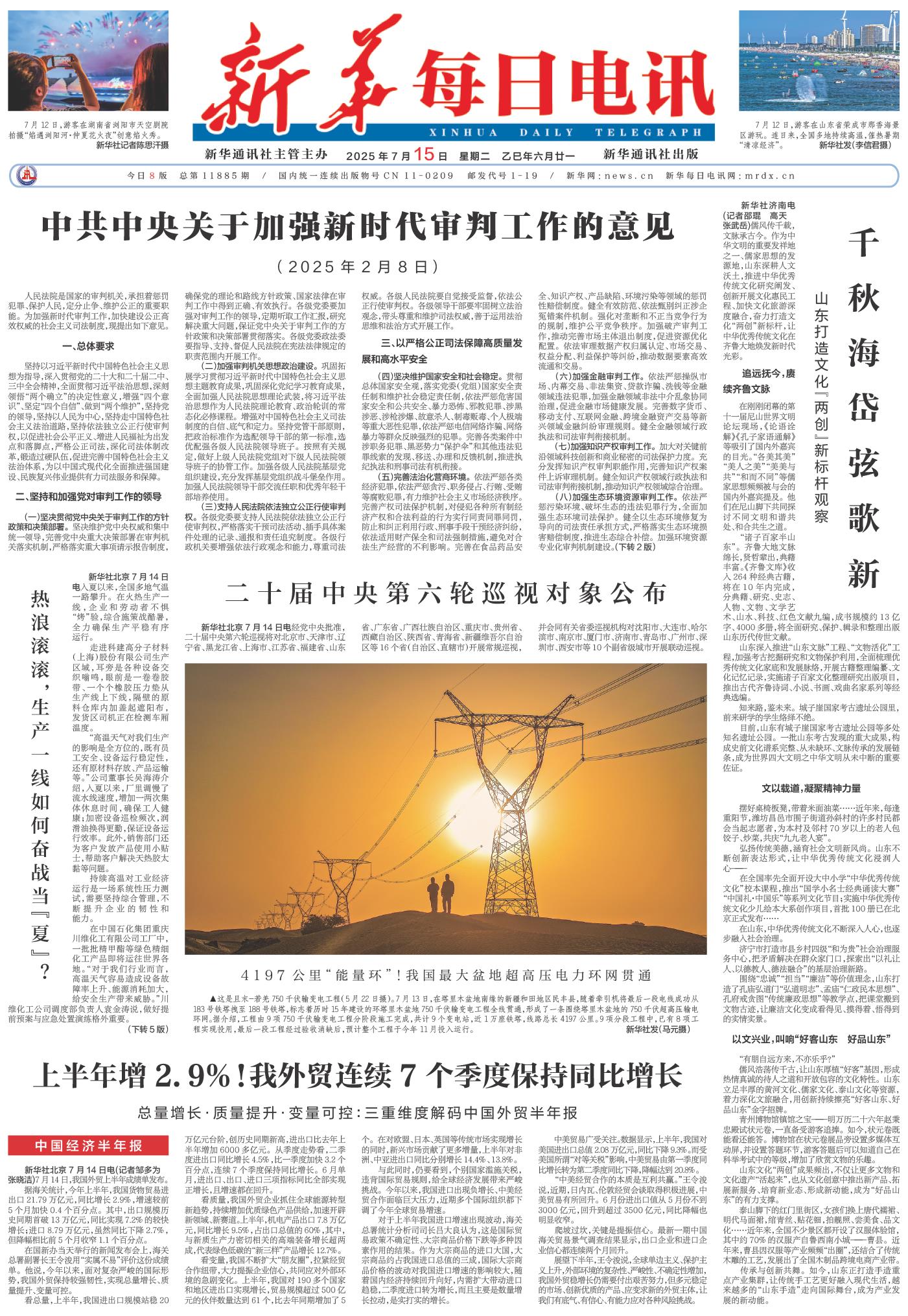( 2025-07-15 ) 稿件来源:新华每日电讯 要闻