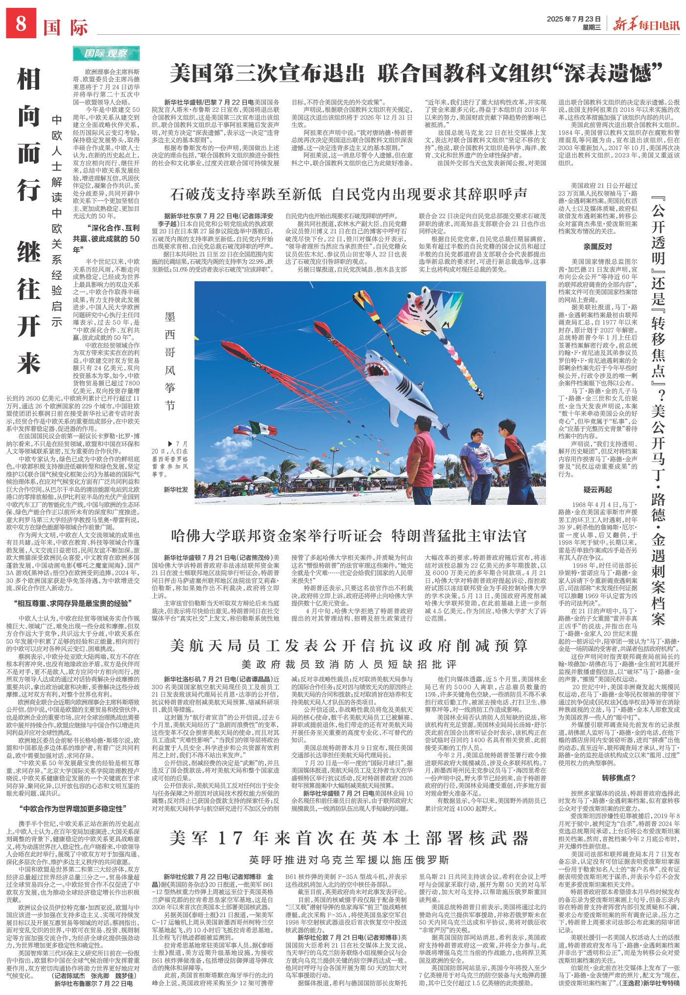 | ( 2025-07-23 ) 稿件来源:新华每日电讯 国际 |