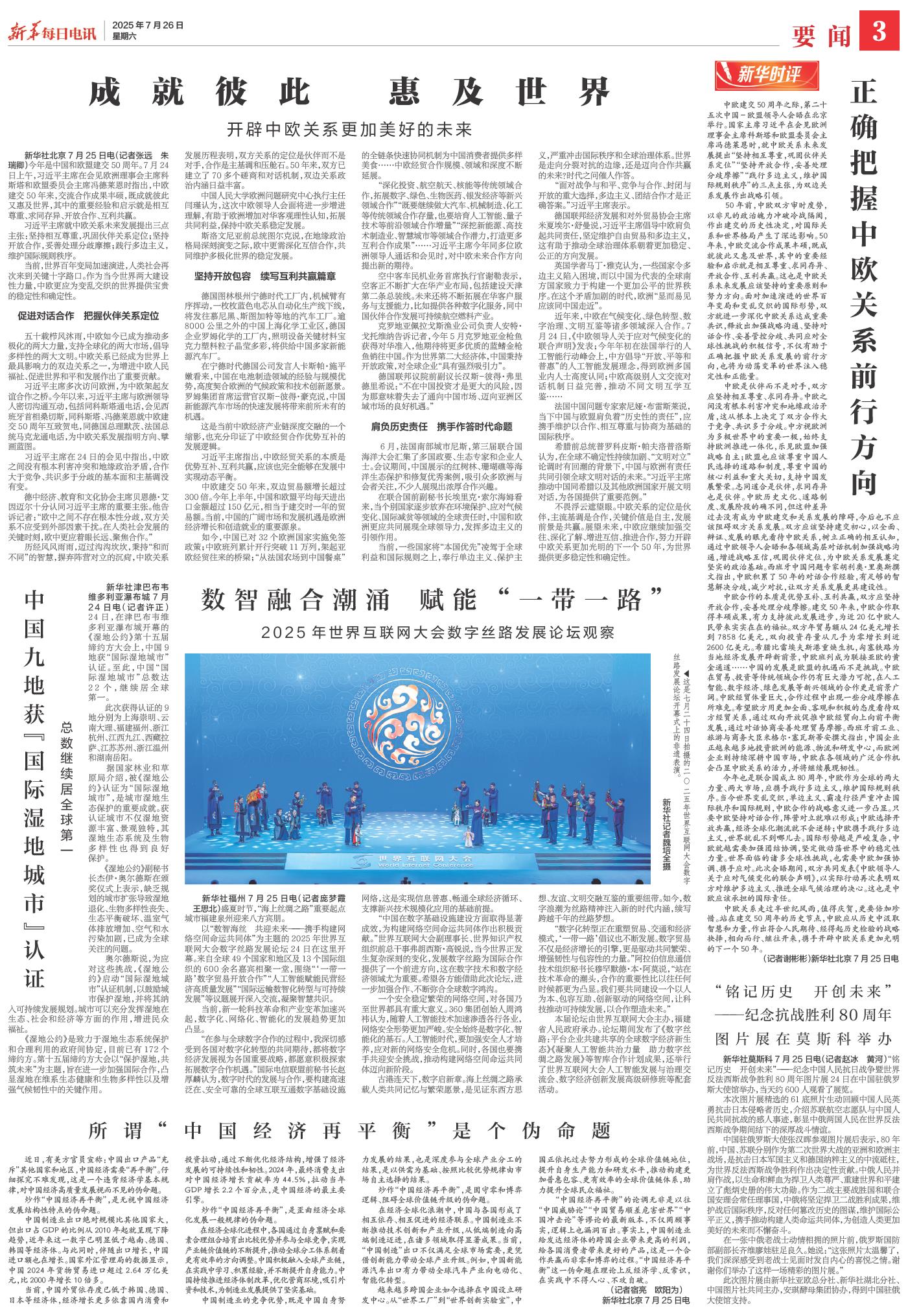 | ( 2025-07-26 ) 稿件来源:新华每日电讯 要闻 |