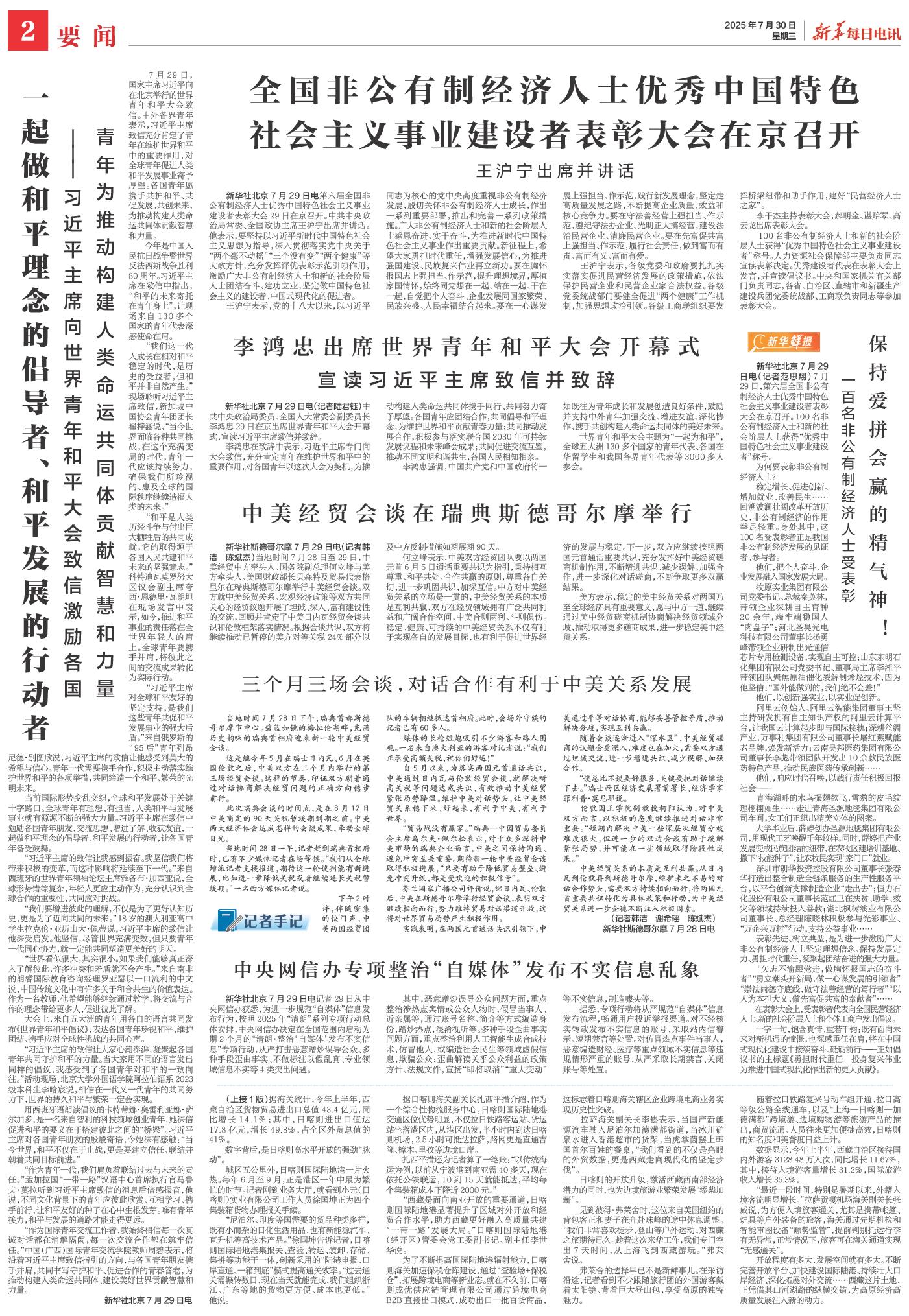 | ( 2025-07-30 ) 稿件来源:新华每日电讯 要闻 |
