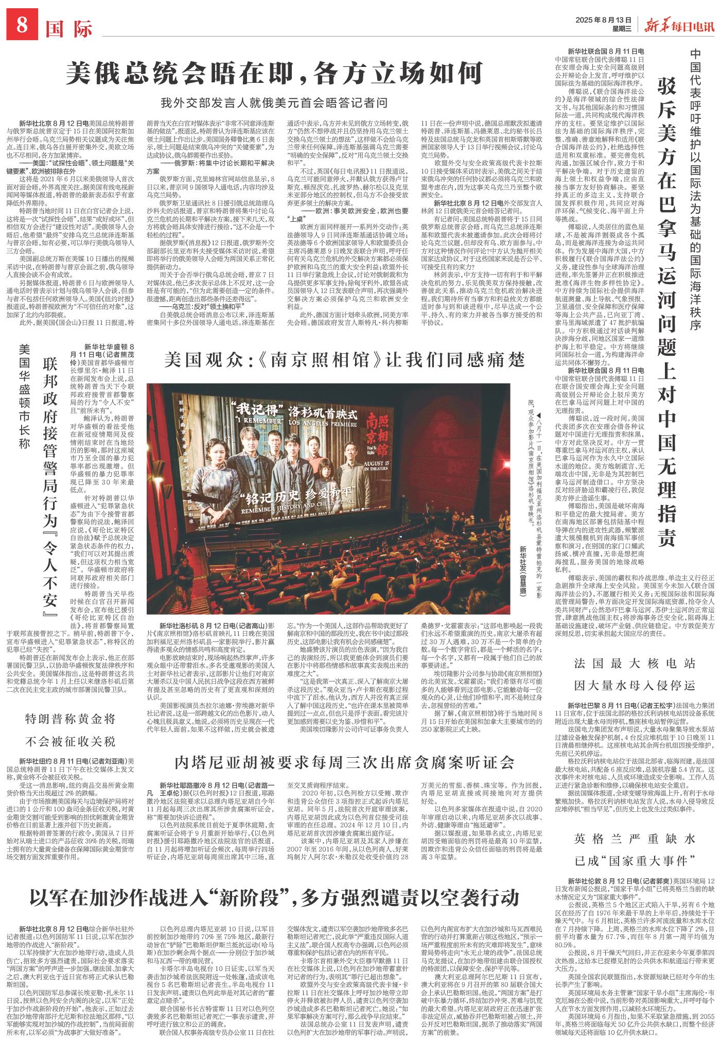 | ( 2025-08-13 ) 稿件来源:新华每日电讯 国际 |