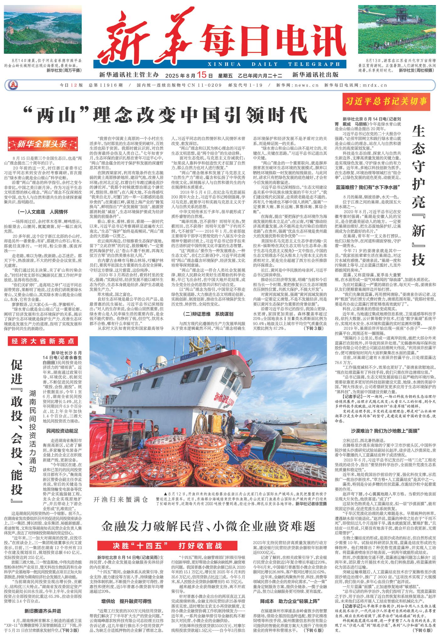 8月15日是第三个全国生态日,也是“两山”理念提出二十周年的日子。