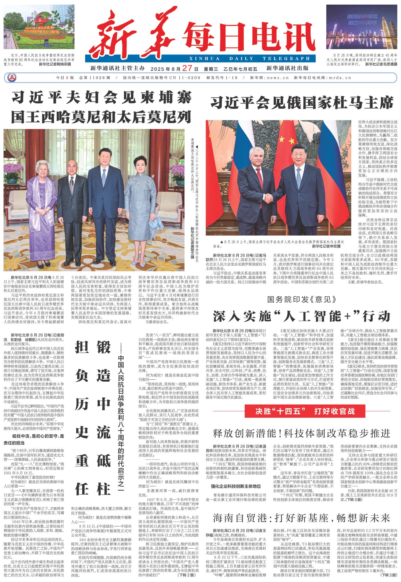| ( 2025-08-27 ) 稿件来源:新华每日电讯 要闻 |
