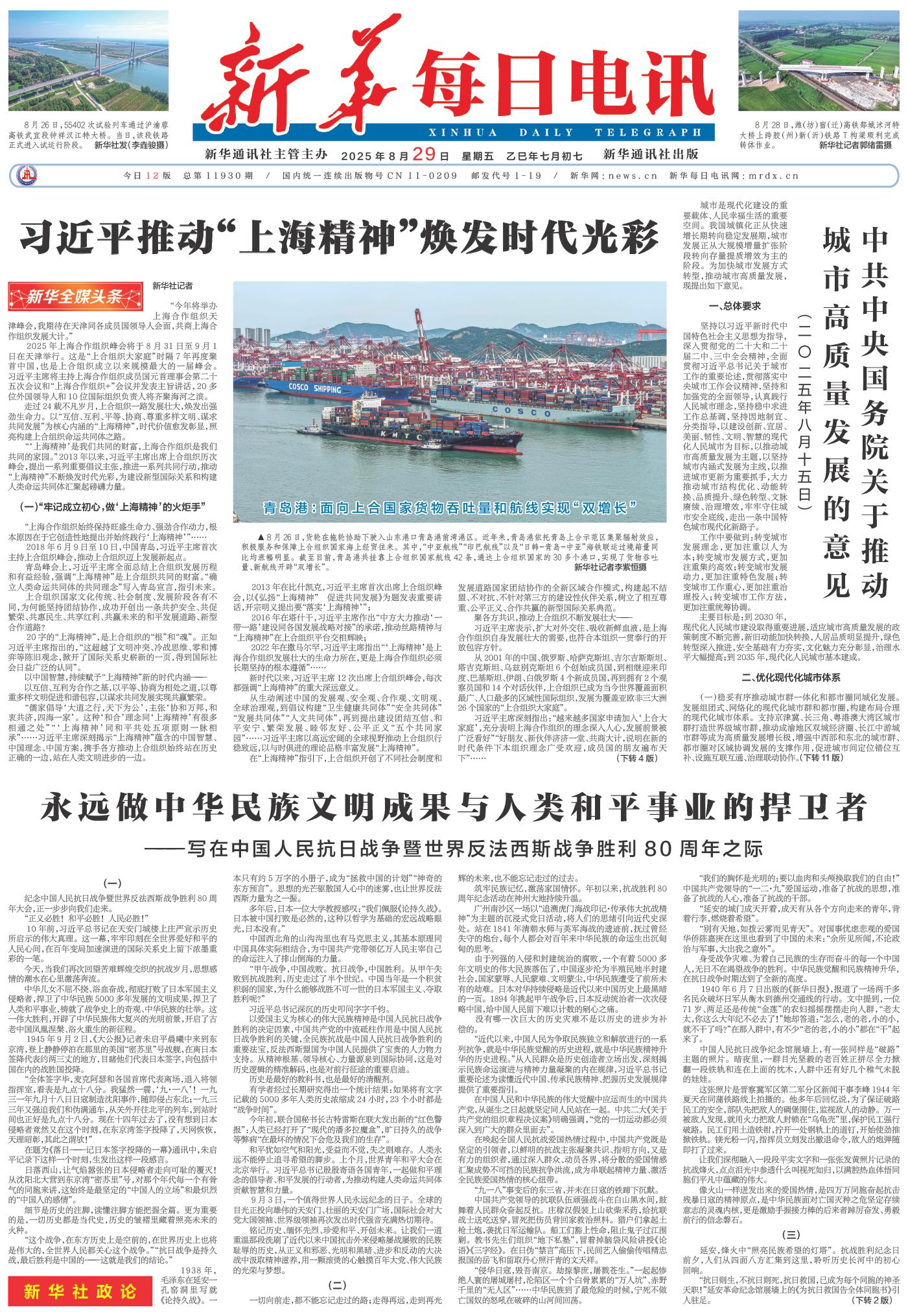 今年是中国人民抗日战争暨世界反法西斯战争胜利80周年,也是联合国成立80周年。上合组织天津峰会前,习近平主席在多个场合表明捍卫国际公平正义的坚定立场。