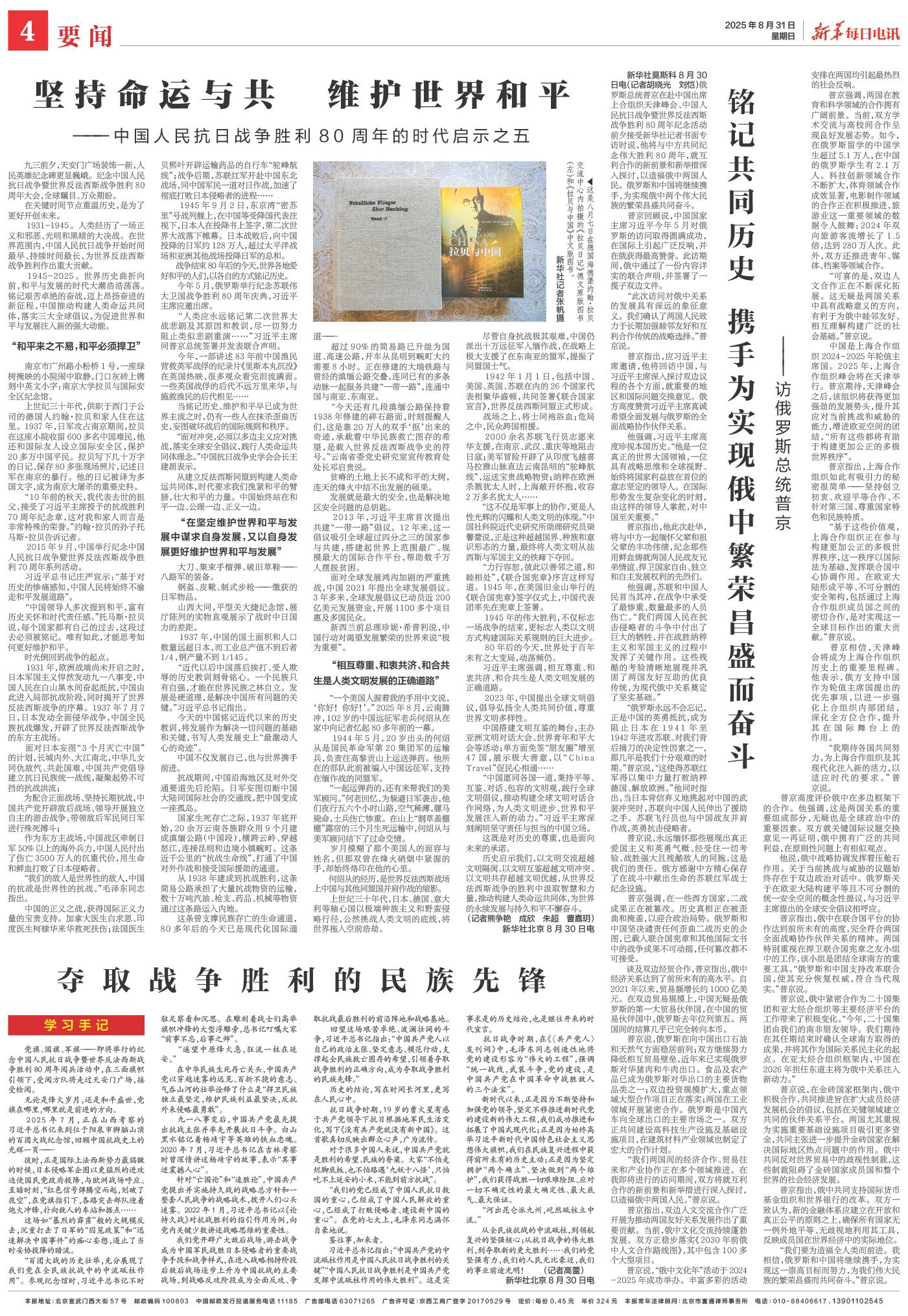 “人类应永远铭记第二次世界大战悲剧及其原因和教训,尽一切努力阻止类似悲剧重演……”习近平主席同普京总统签署并发表联合声明。