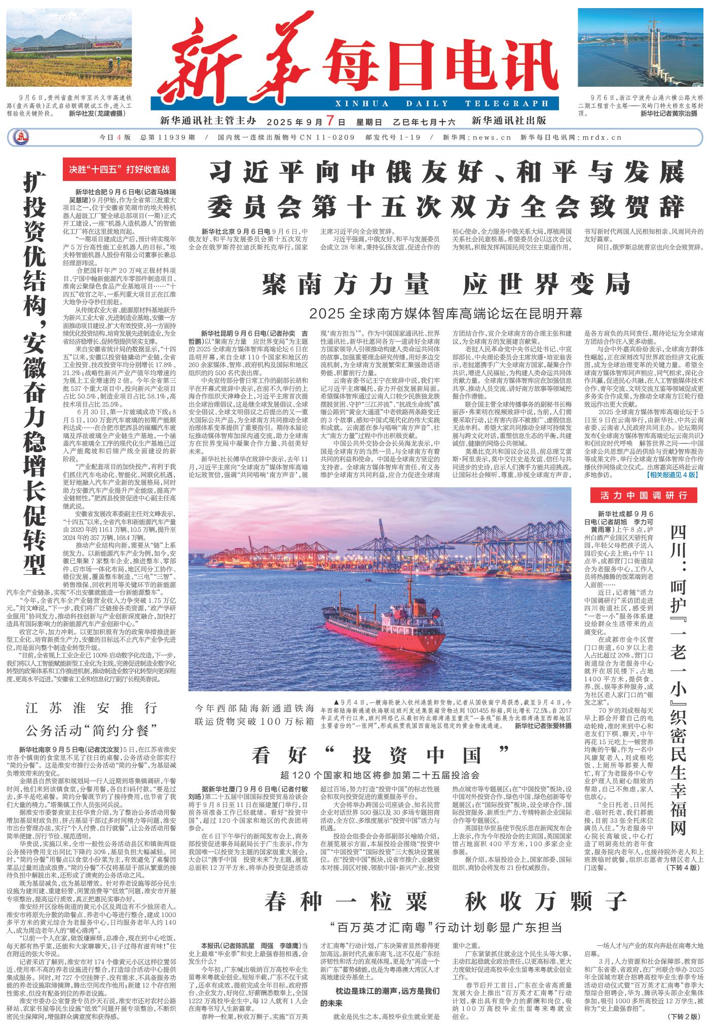 | ( 2025-09-07 ) 稿件来源:新华每日电讯 要闻 |