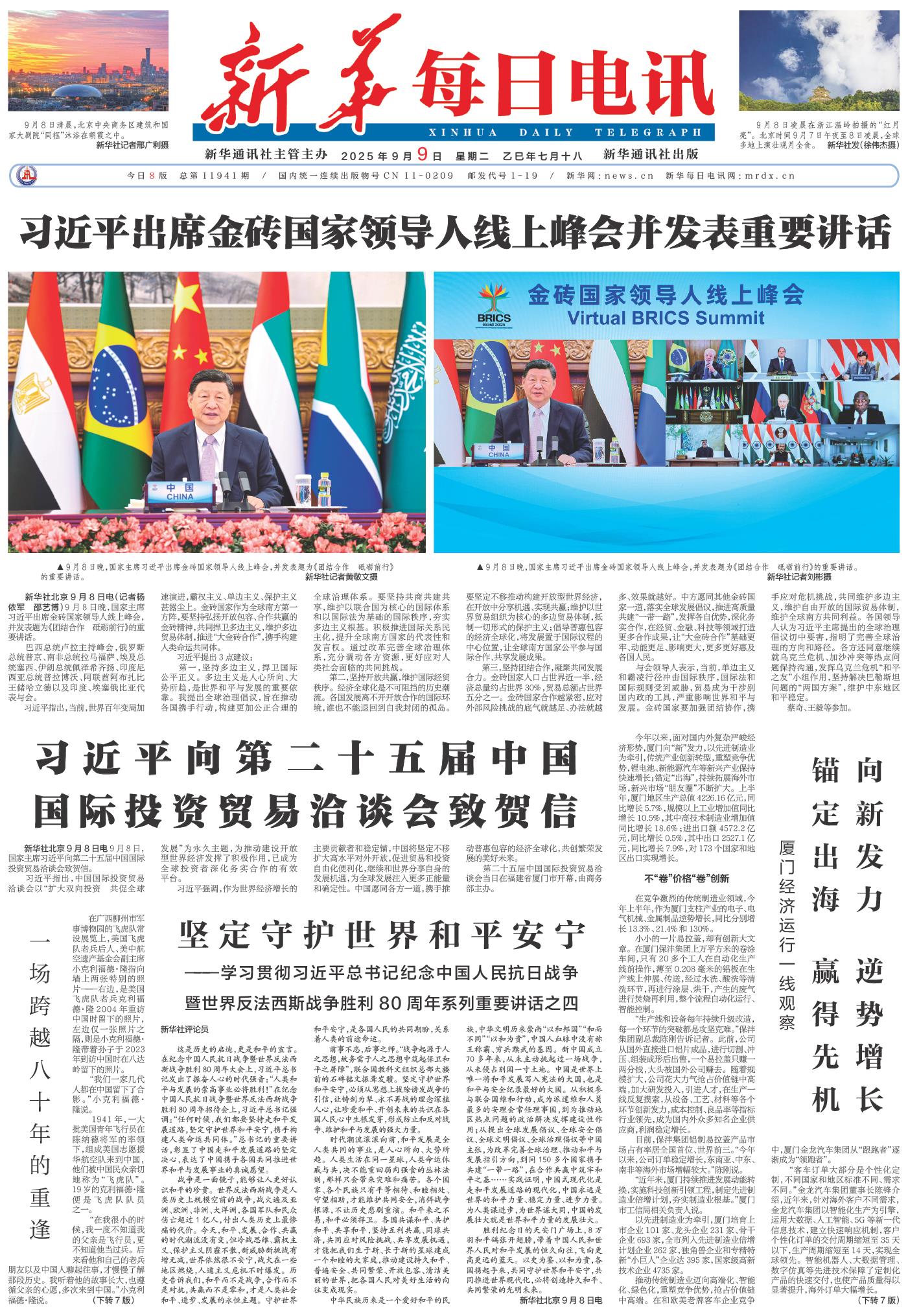 | ( 2025-09-09 ) 稿件来源:新华每日电讯 要闻 |
