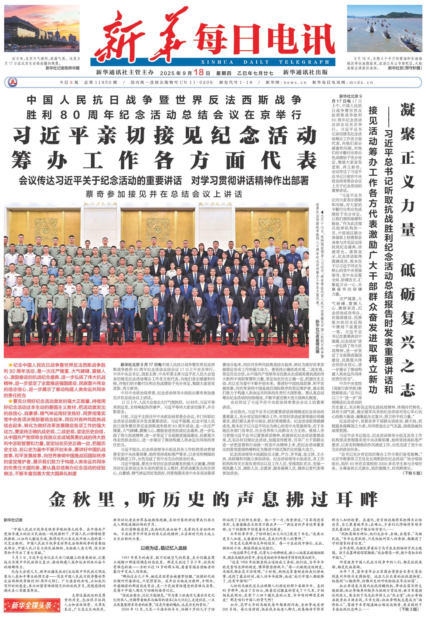 纪念大会前几天,新华社播发政论《永远做中华民族文明成果与人类和平事业的捍卫者——写在中国人民抗日战争暨世界反法西斯战争胜利80周年之际》。广大读者的共鸣,正如我们写作时的感受:再次回望苦难辉煌交织的抗战岁月,思想感情的潮水在心里激荡奔流。