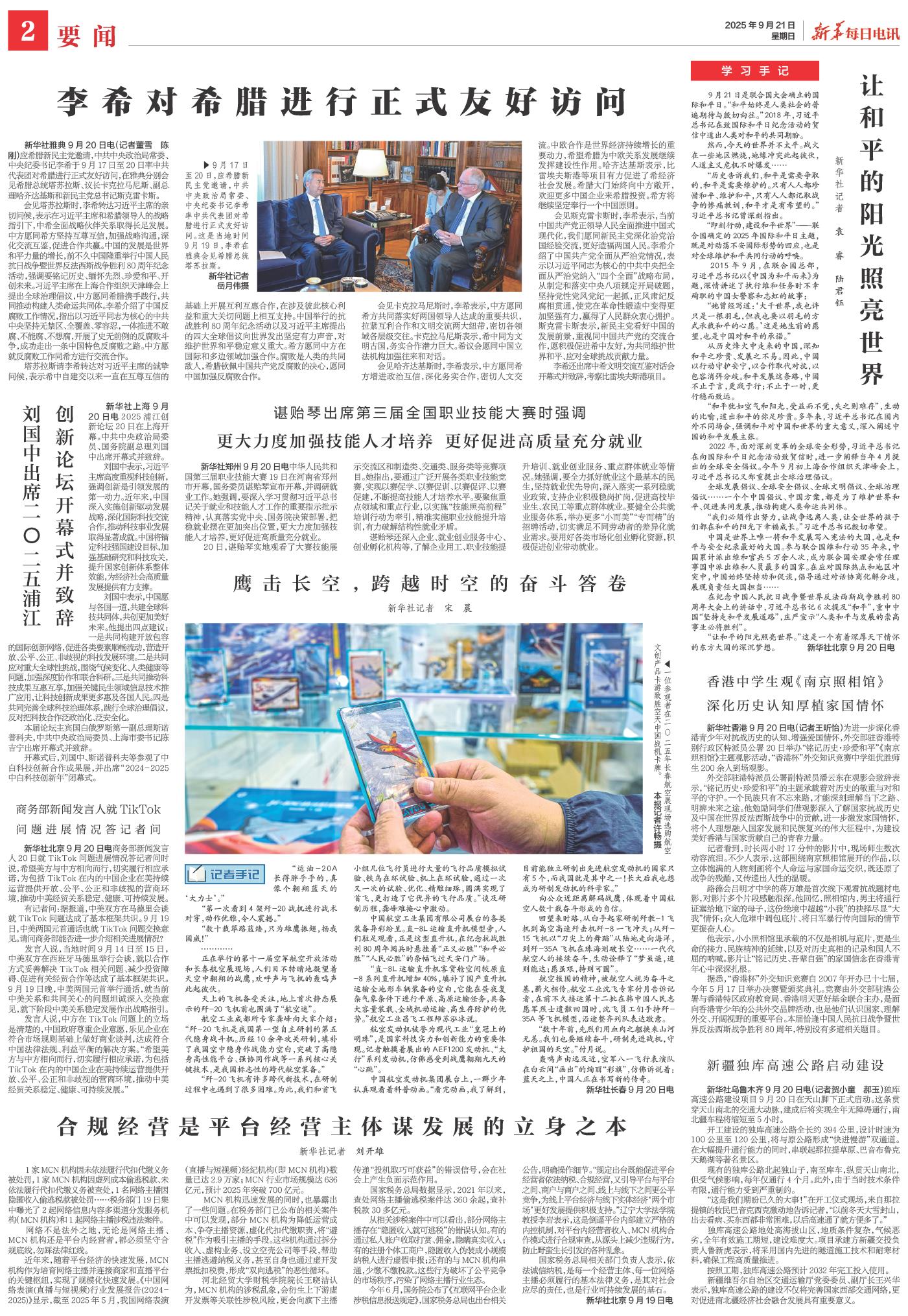 | ( 2025-09-21 ) 稿件来源:新华每日电讯 要闻 |