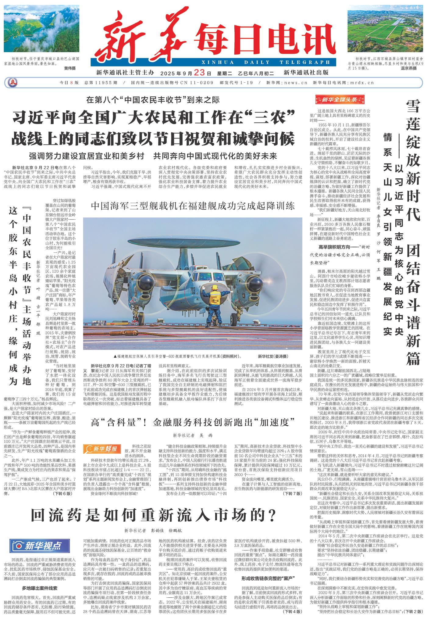 | ( 2025-09-23 ) 稿件来源:新华每日电讯 要闻 |