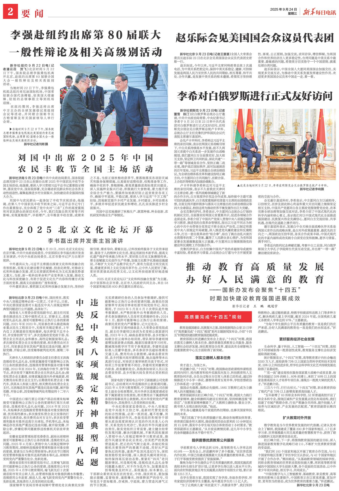 | ( 2025-09-24 ) 稿件来源:新华每日电讯 要闻 |